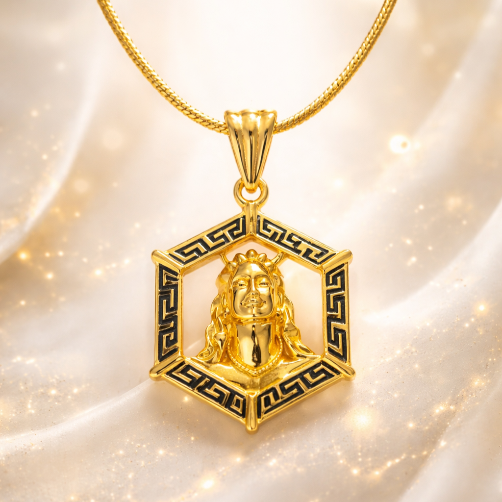 Crafted in pure 22K gold with 916 hallmark, the Adiyogi Gold Pendant features a finely sculpted divine face framed within a bold geometric design, symbolizing balance, protection, and inner awakening.