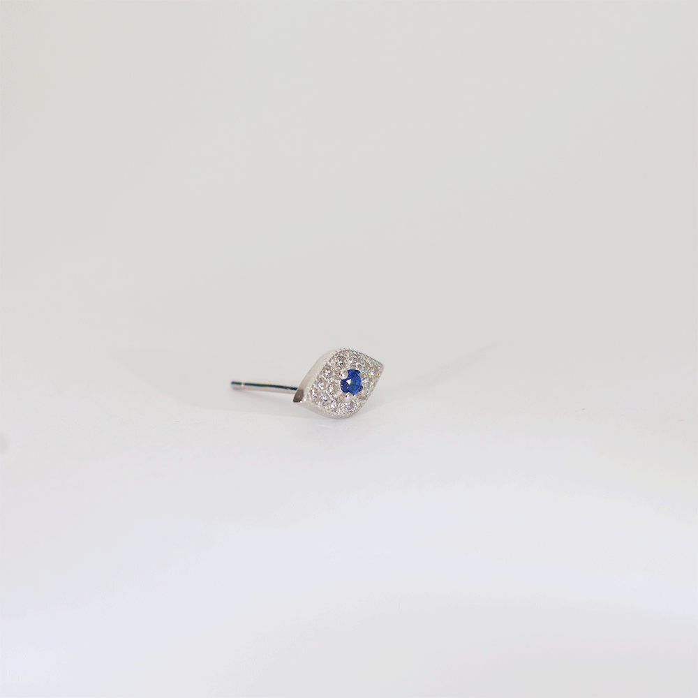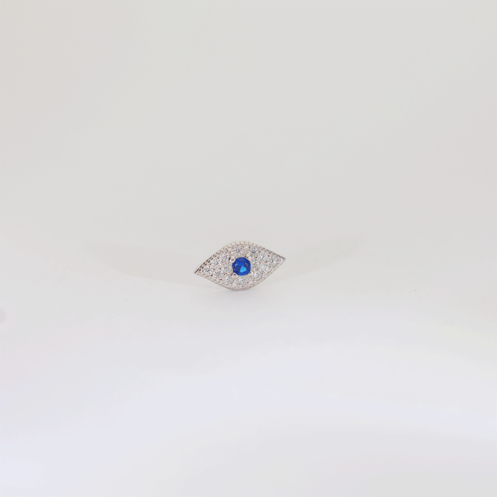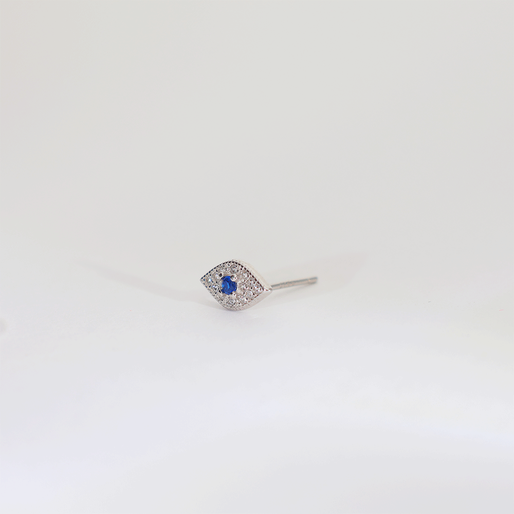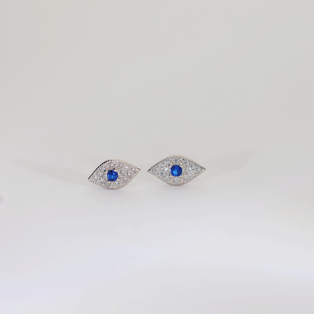 Design: Crafted in pure 92.5 silver, these earrings feature an eye-shaped design with a bright blue stone in the center and small sparkling stones around it.