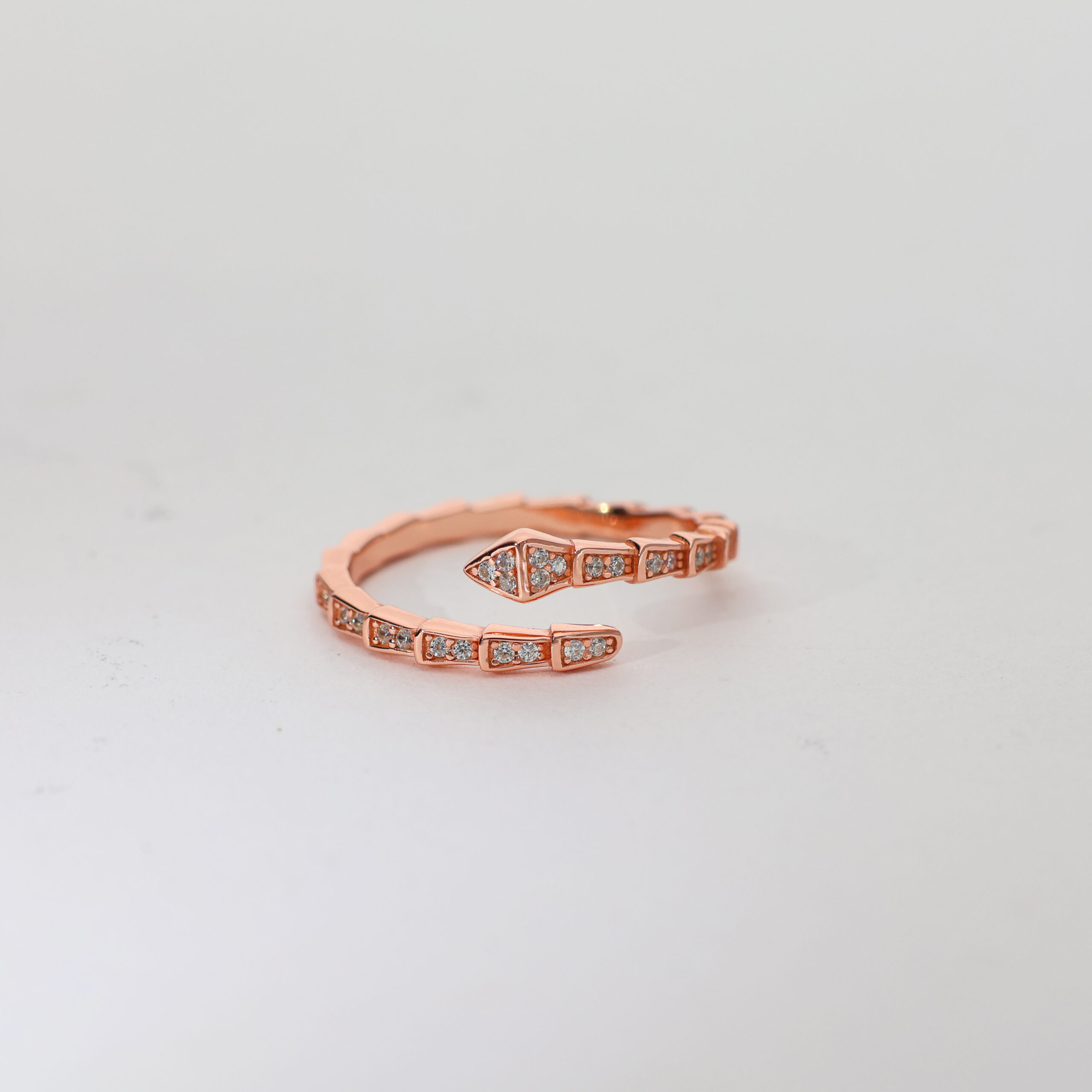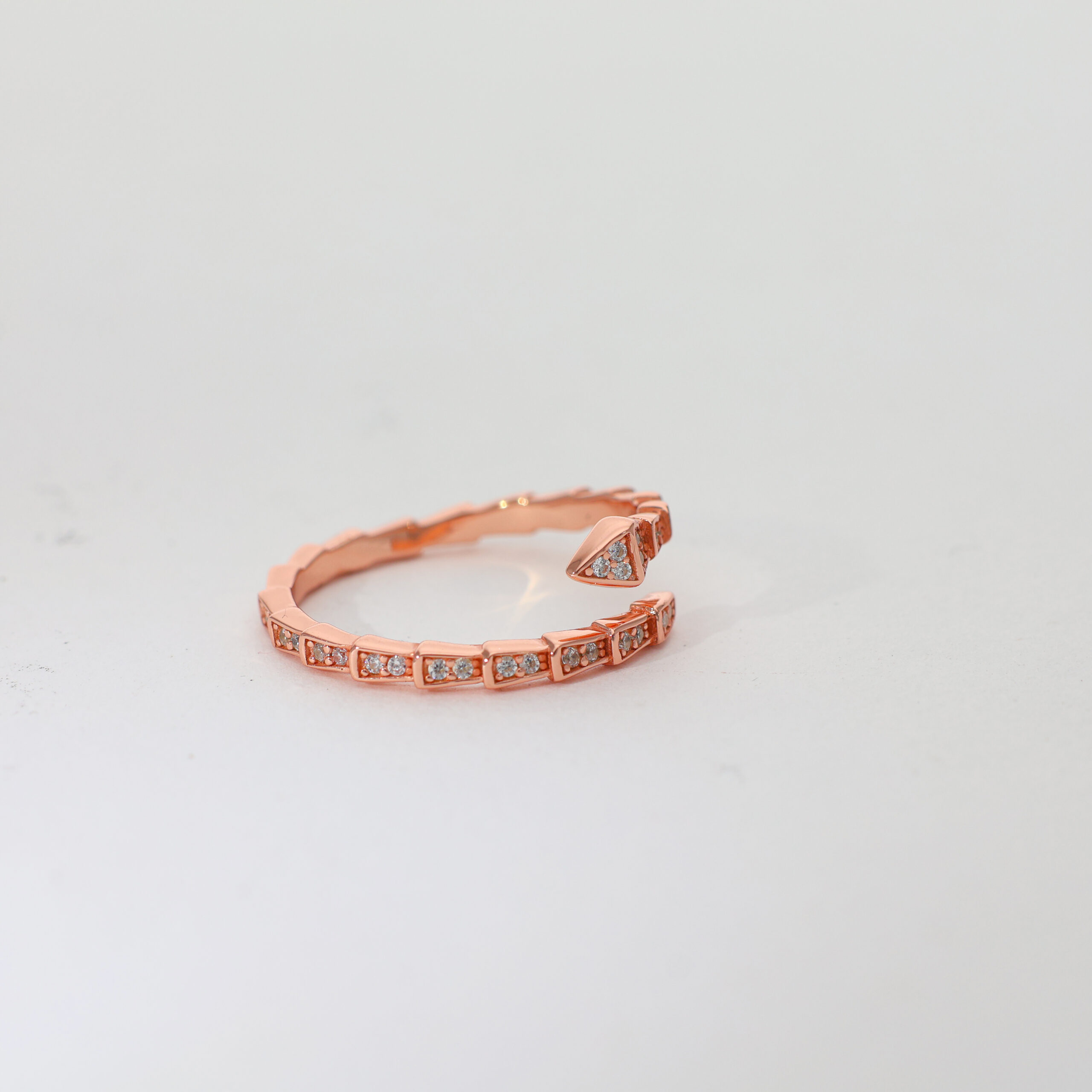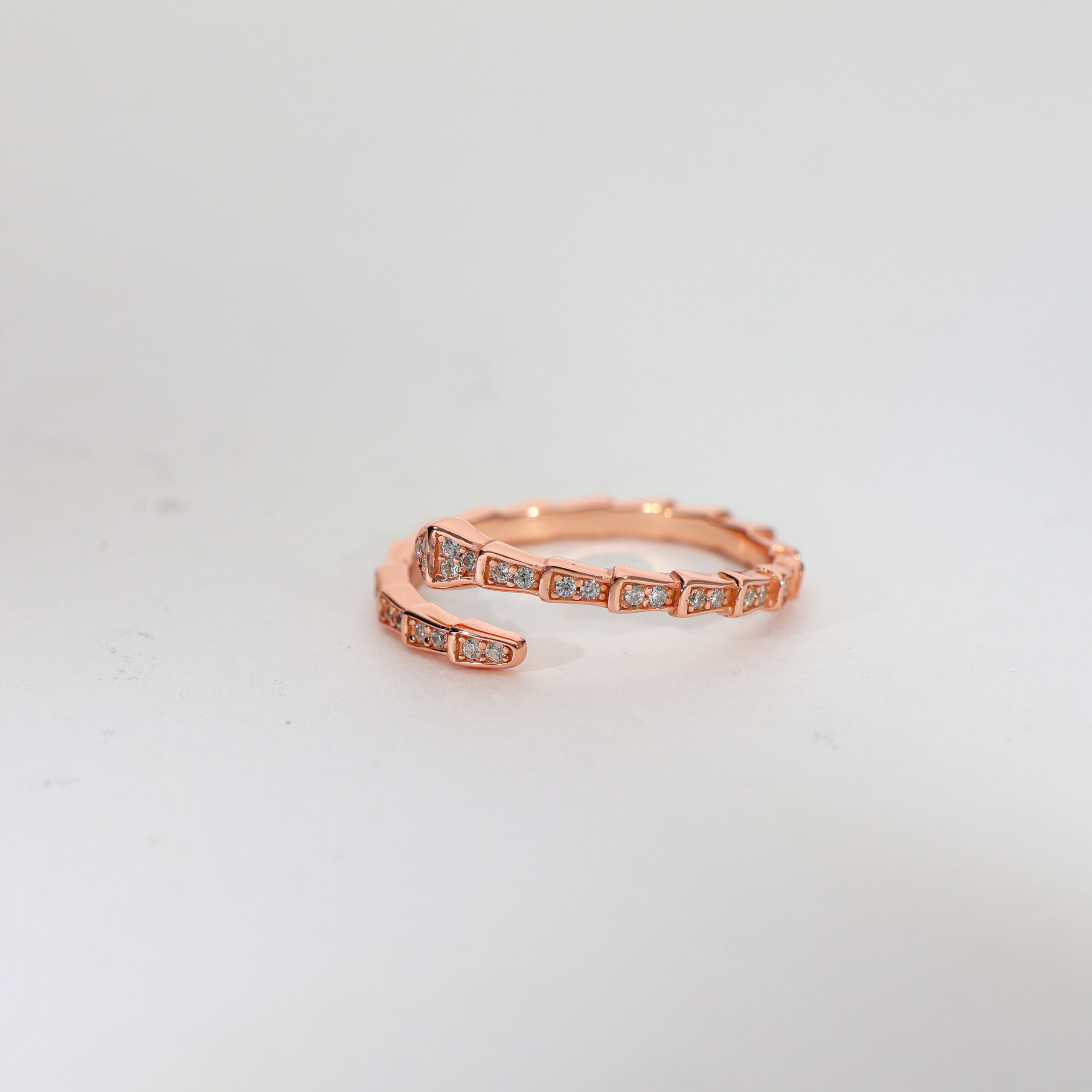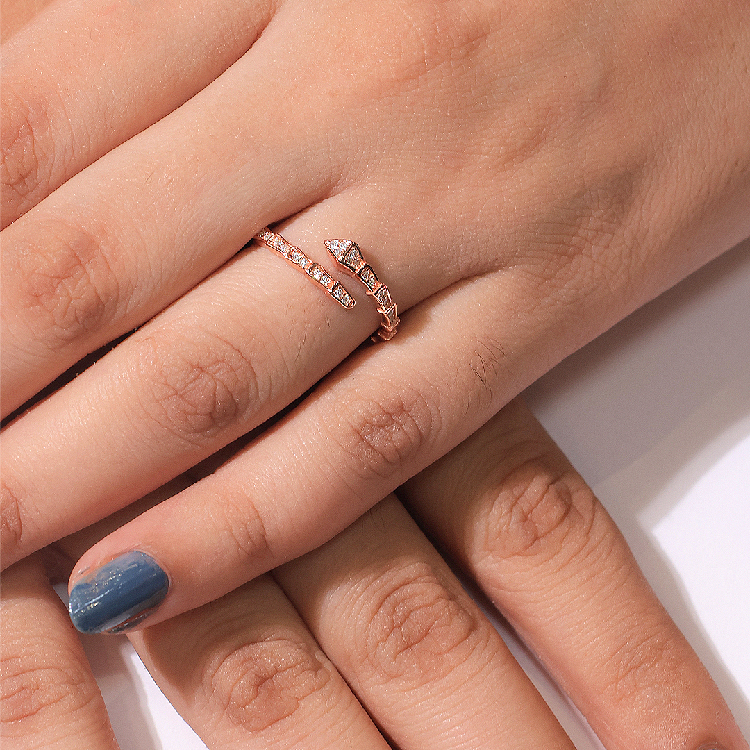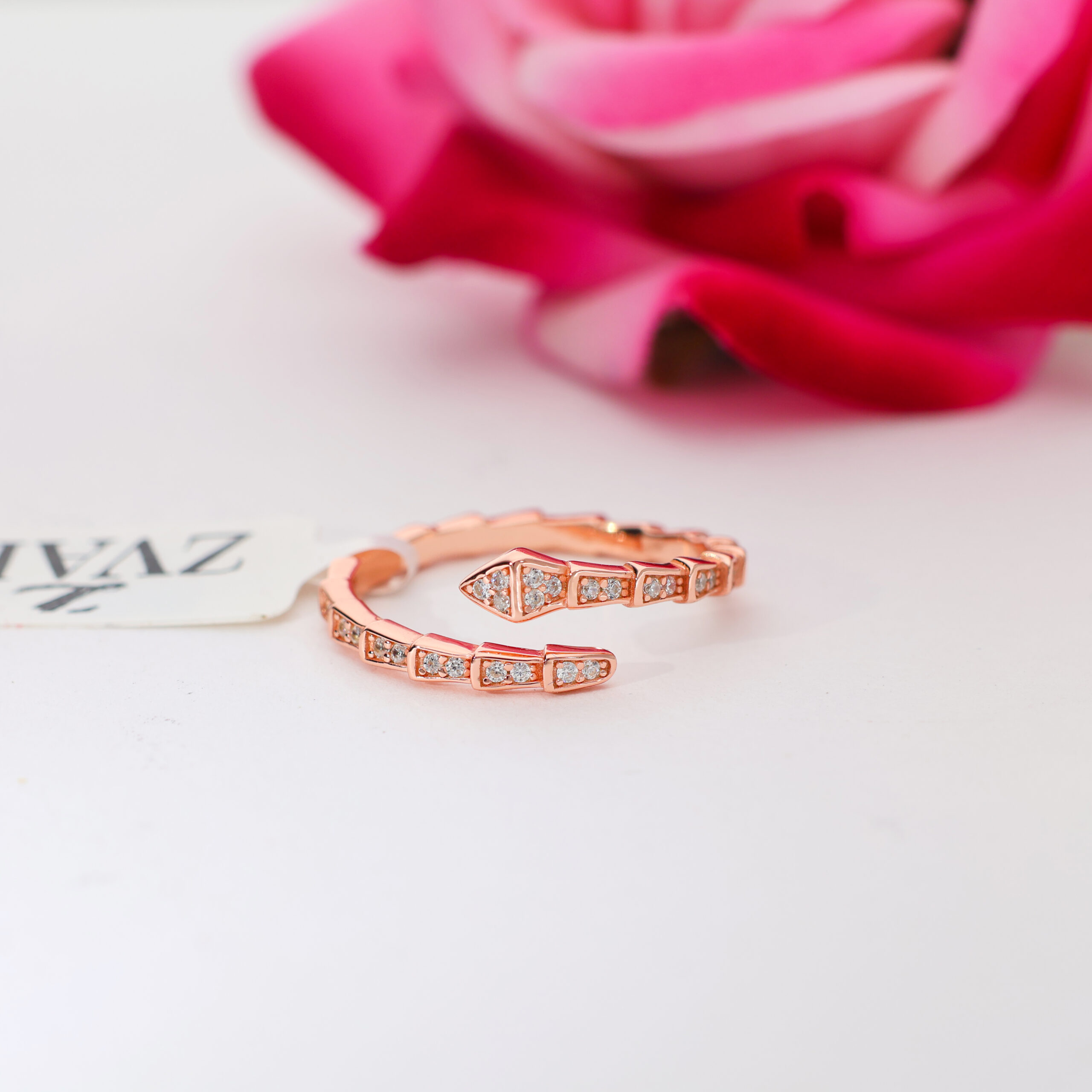 Design: The Blush Spiral Ring shines in rosegold, designed with a sleek spiral wrap dotted with sparkling square motifs, making it a captivating statement piece for modern women.