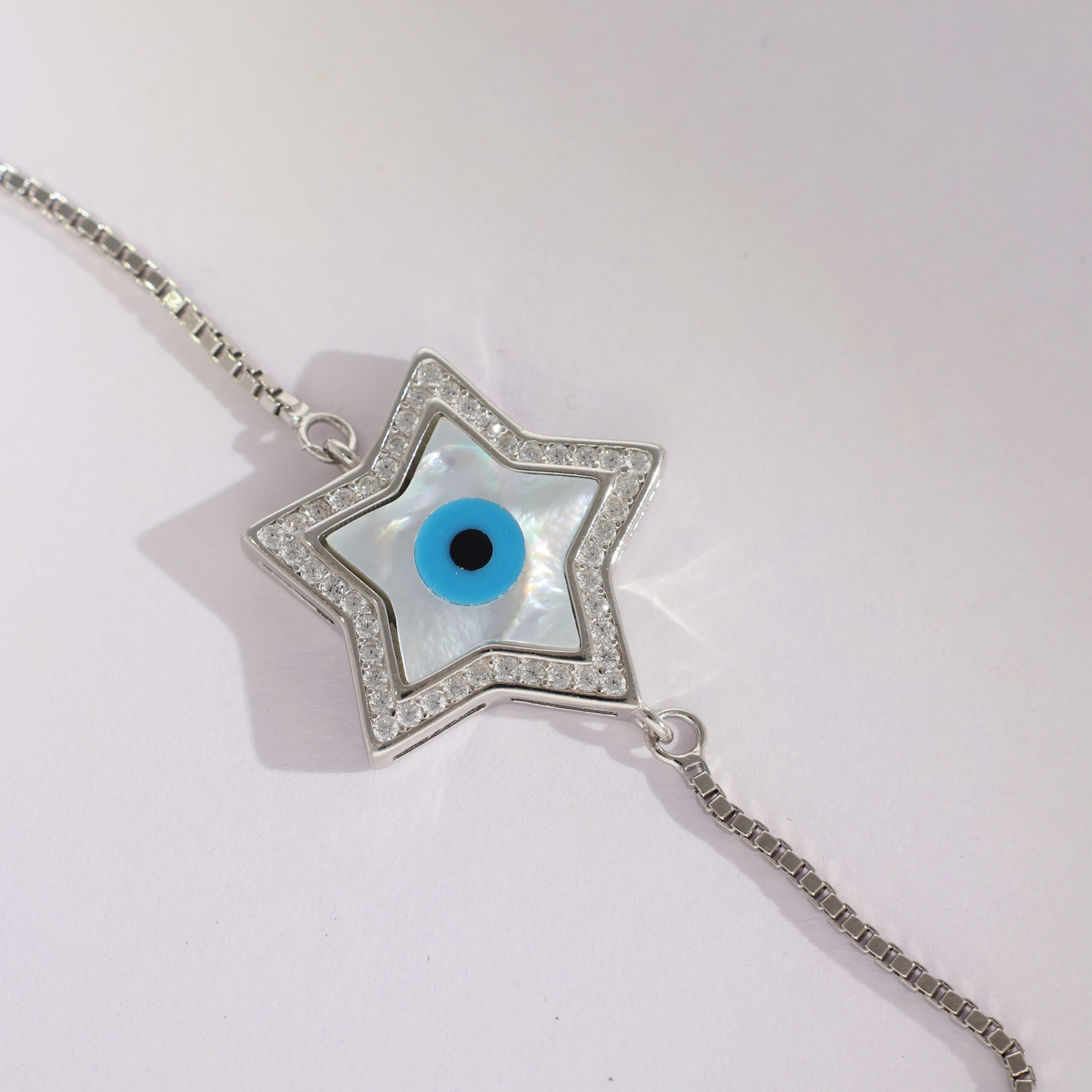Inspired by the belief that stars guide us and the evil eye protects us, this bracelet is designed to bring positivity, protection, and shine into your everyday life.