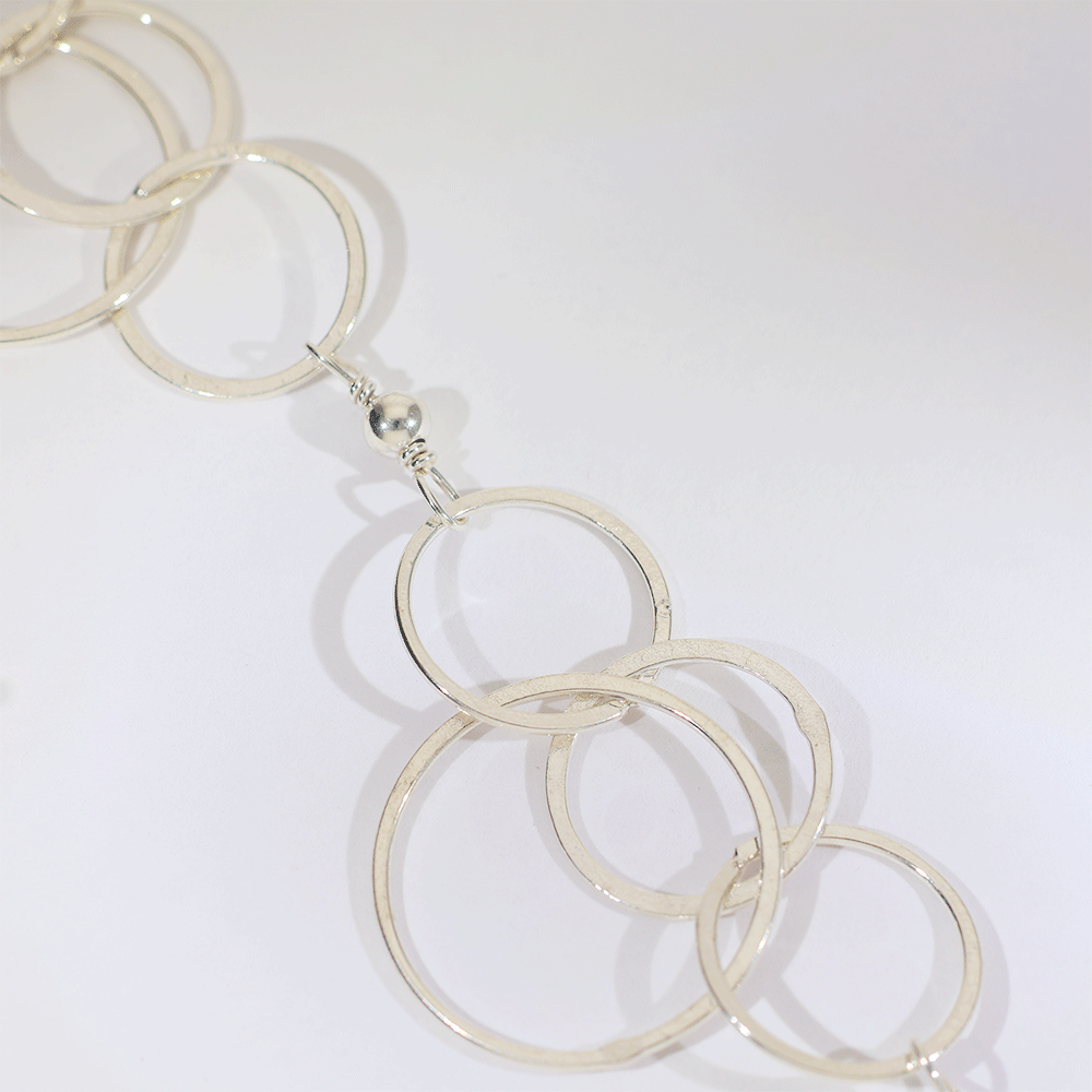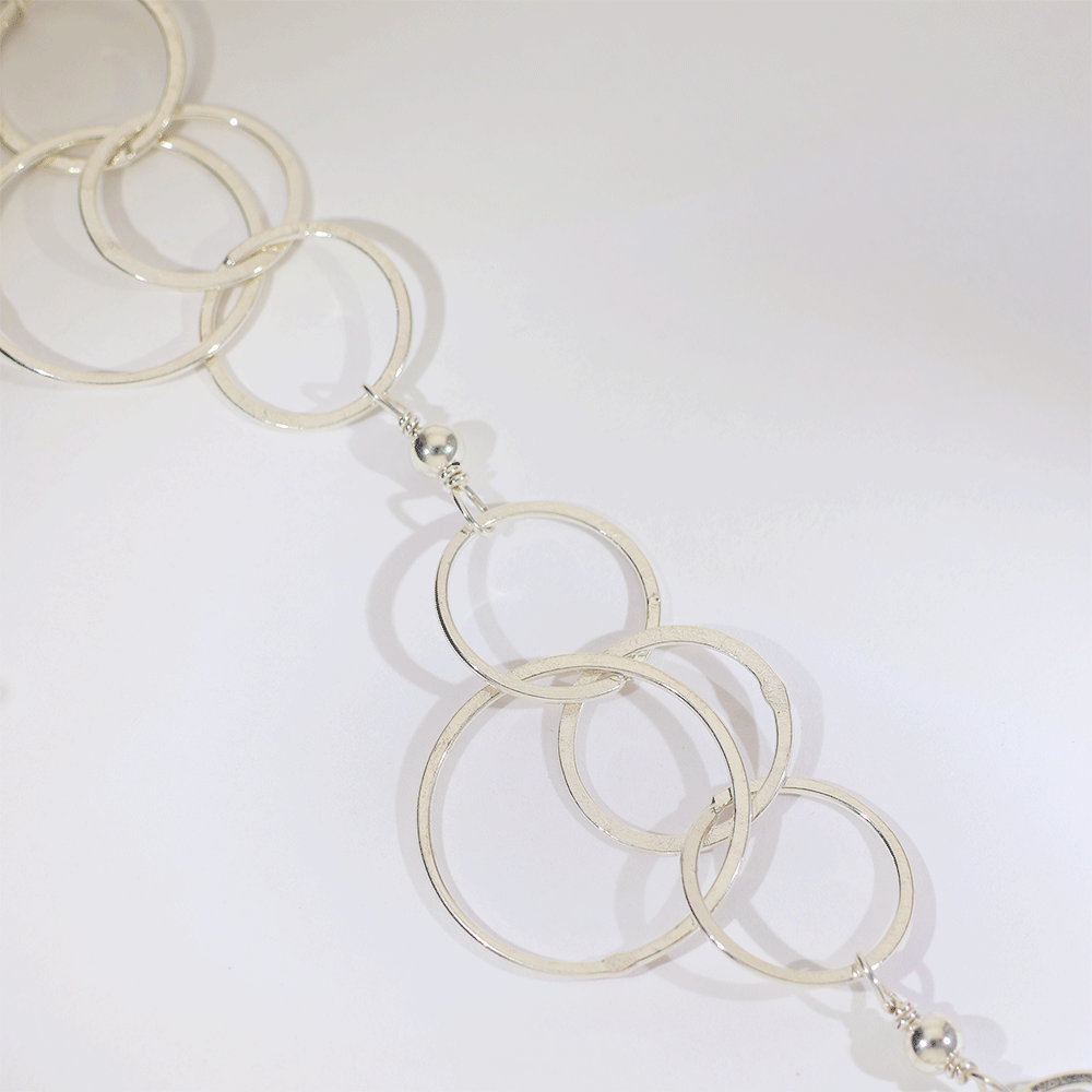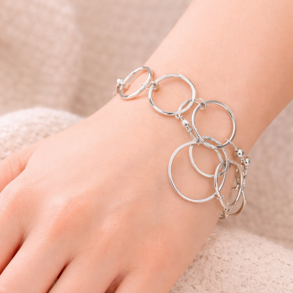 Design: A stylish girlish bracelet with interlinked silver circles that give a modern and playful look.
