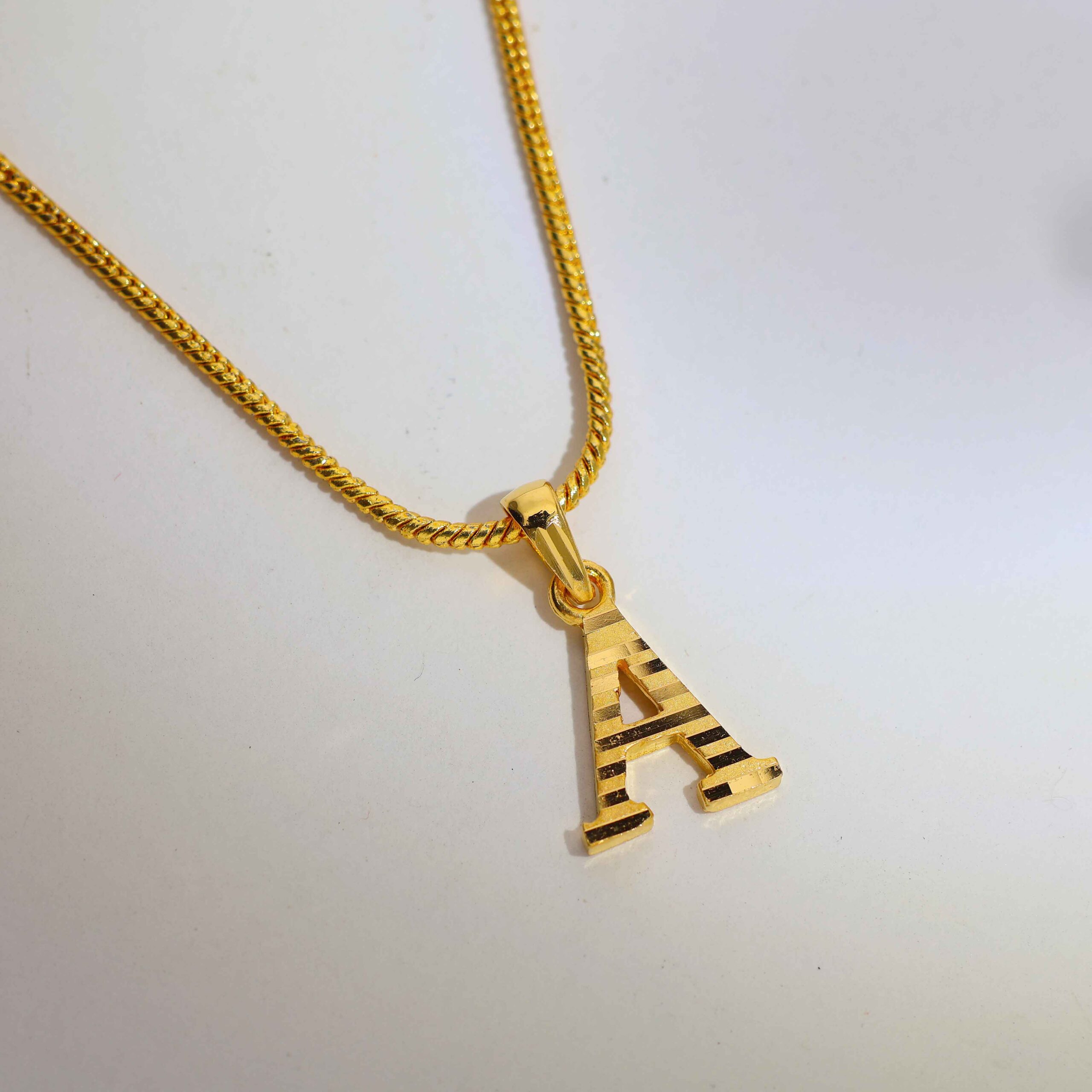 Design: A finely crafted “A” initial in pure 22kt gold, enhanced with clean line detailing for a neat and elegant look.