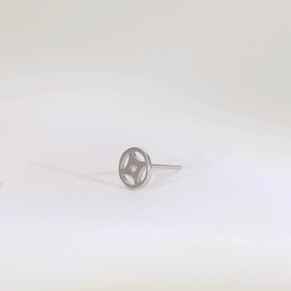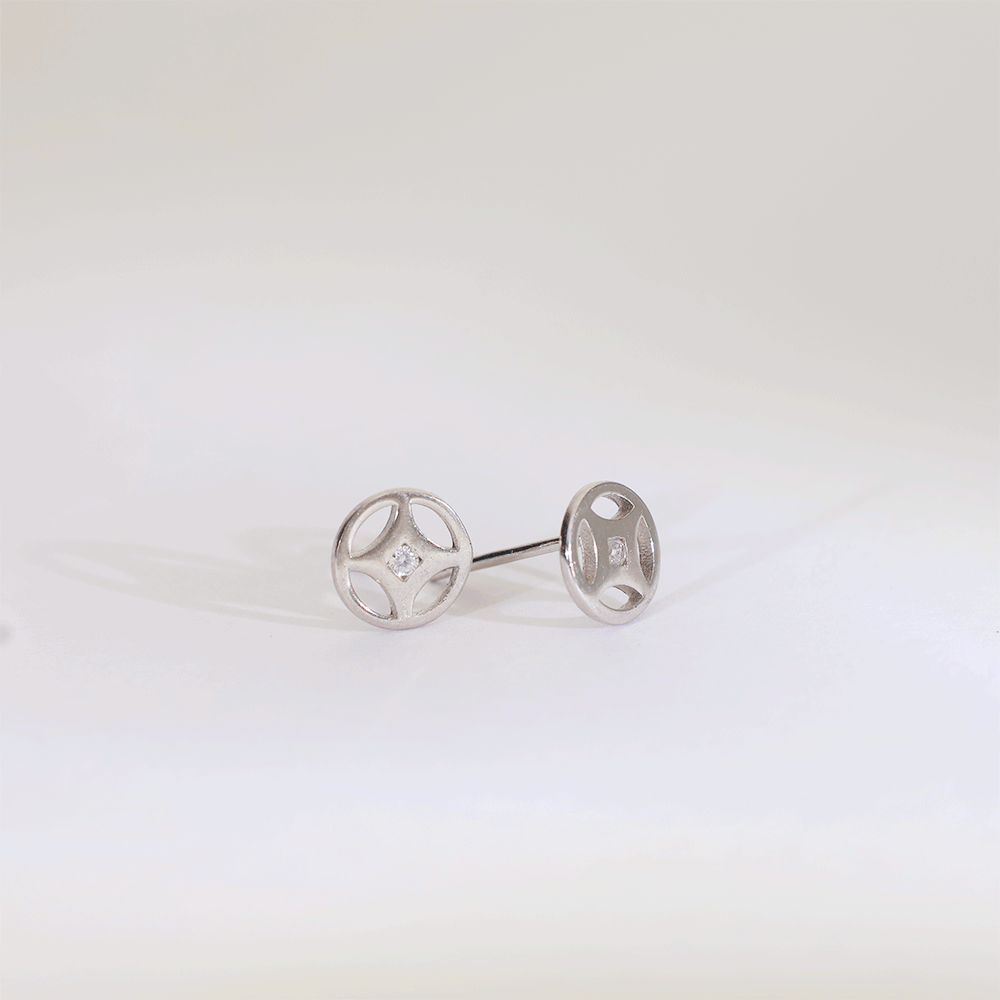 Design: Crafted in pure 92.5 silver, these earrings feature a round shape with open cut design and a small stone in the center for a clean look.