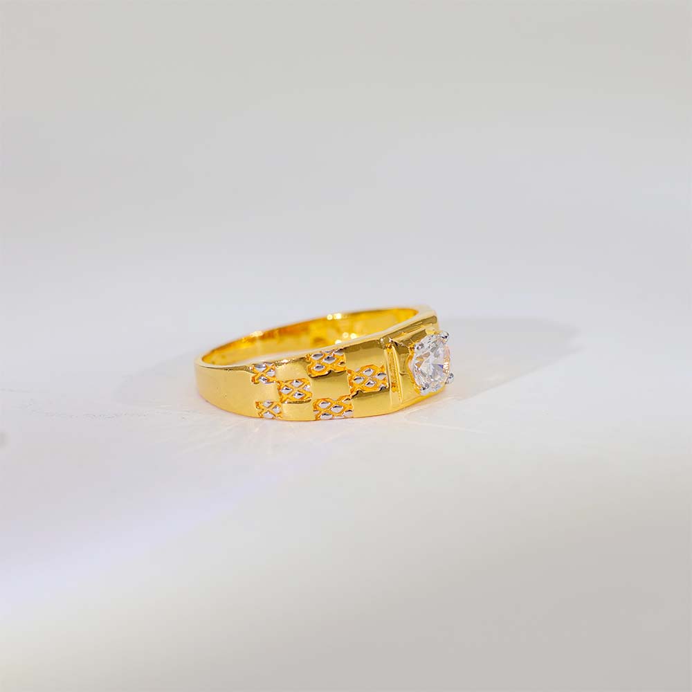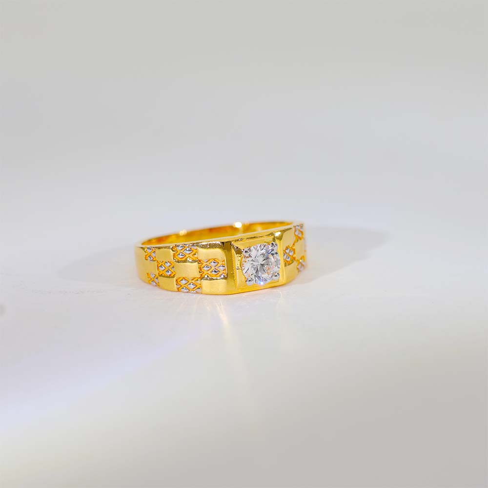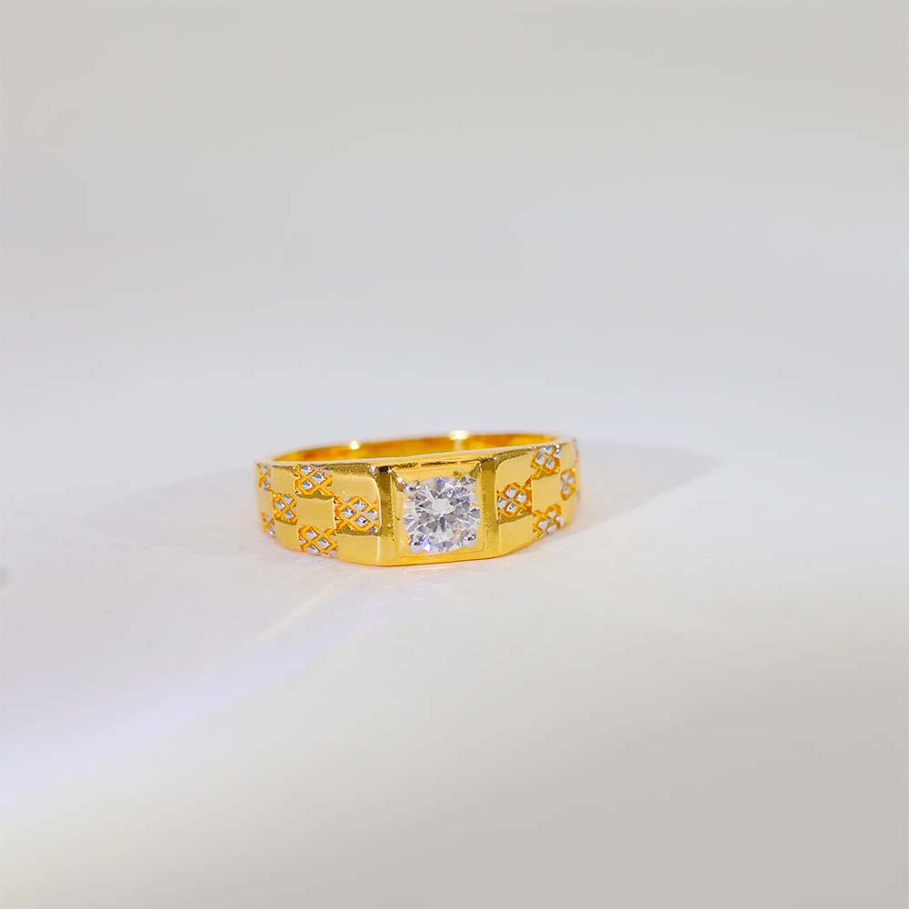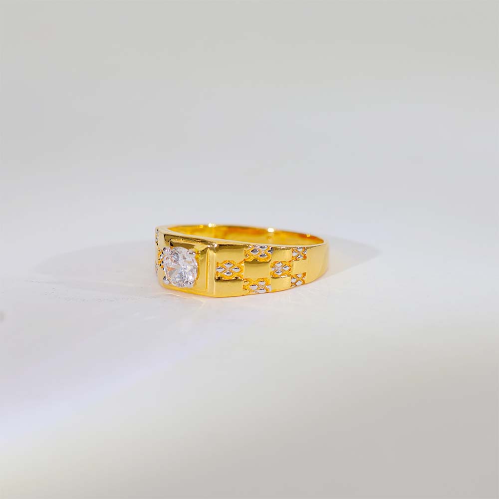 This gents gold ring features a single square stone at the center with neat side cutwork, giving it a balanced and premium look.
