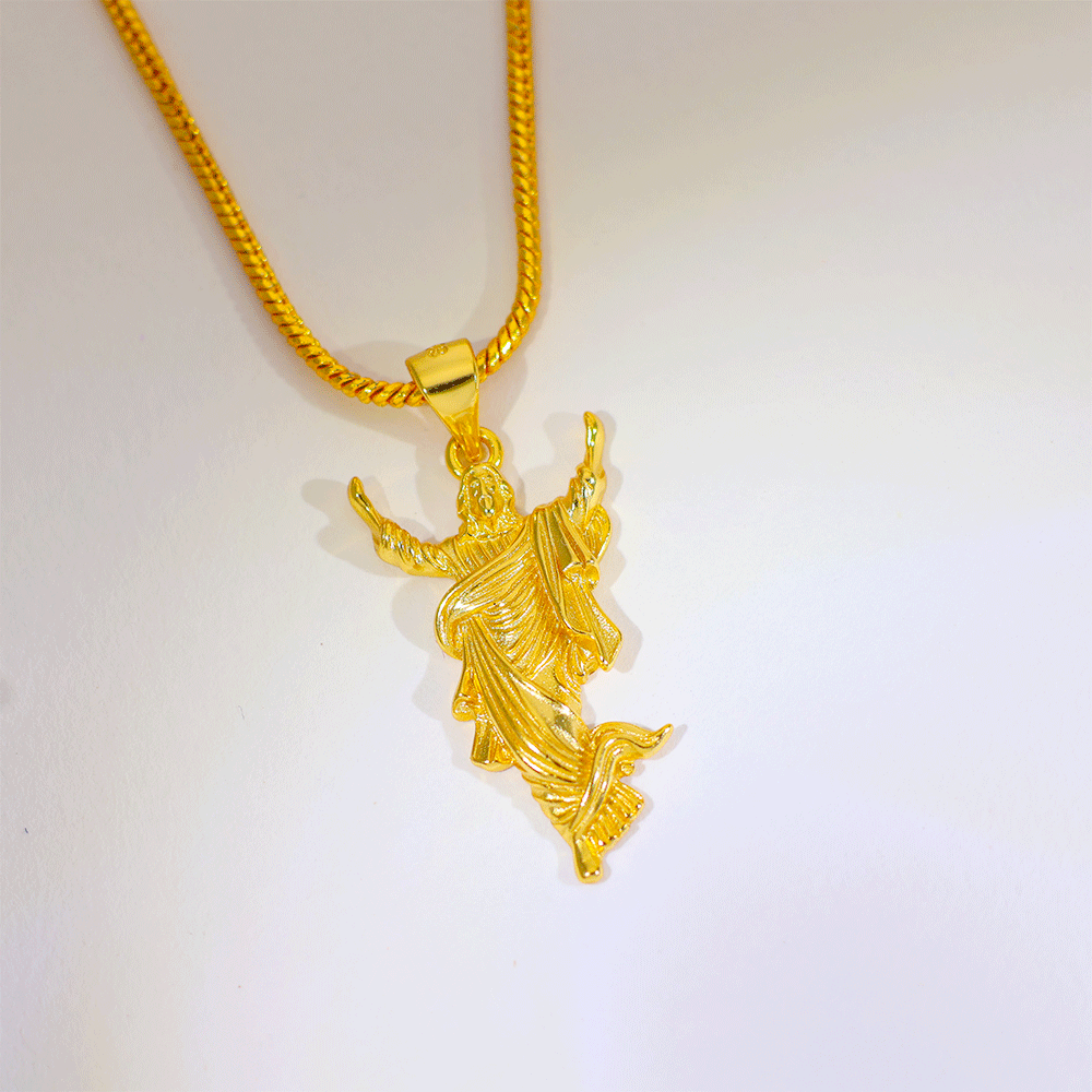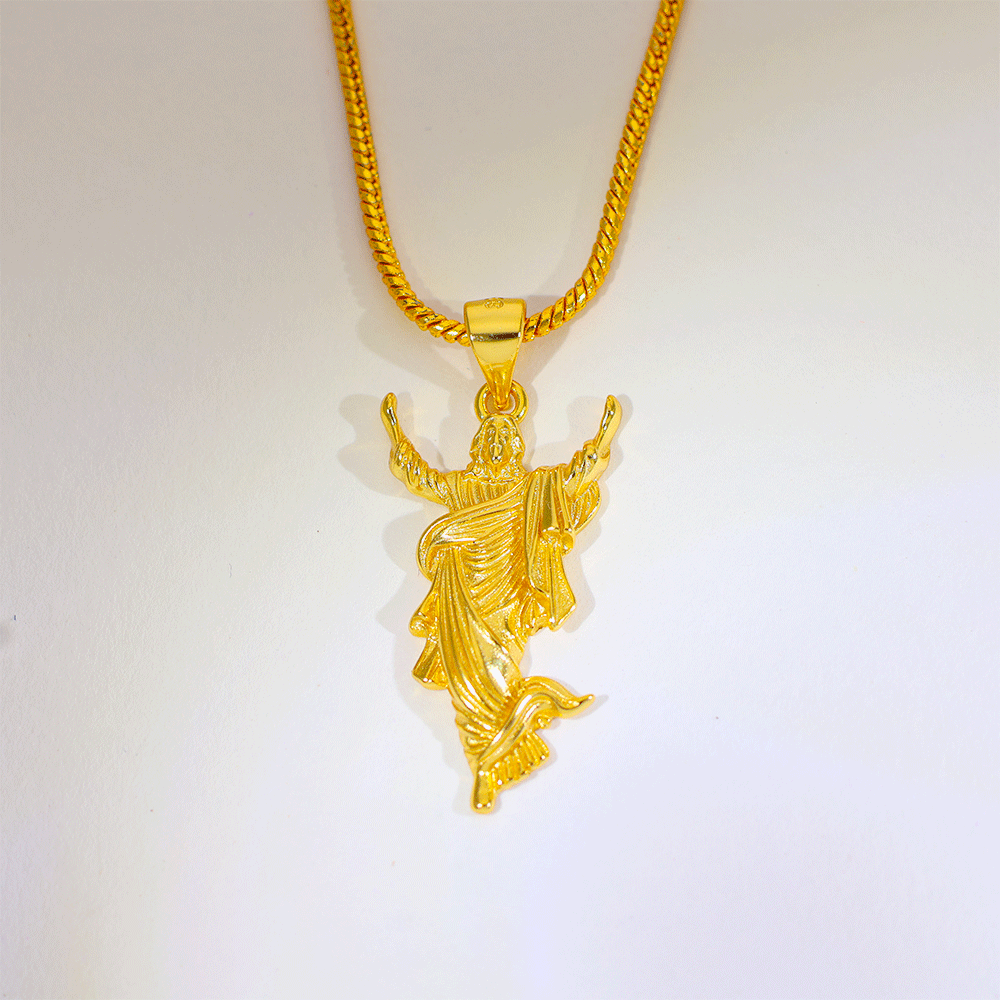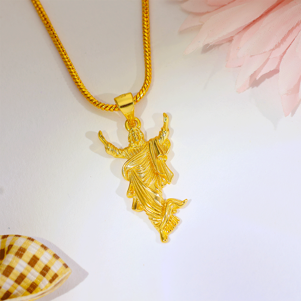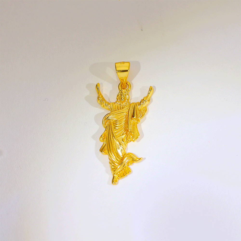 Design: A finely crafted 92.5 silver pendant featuring Jesus in an open arms pose, with smooth detailing and a bright polished finish.