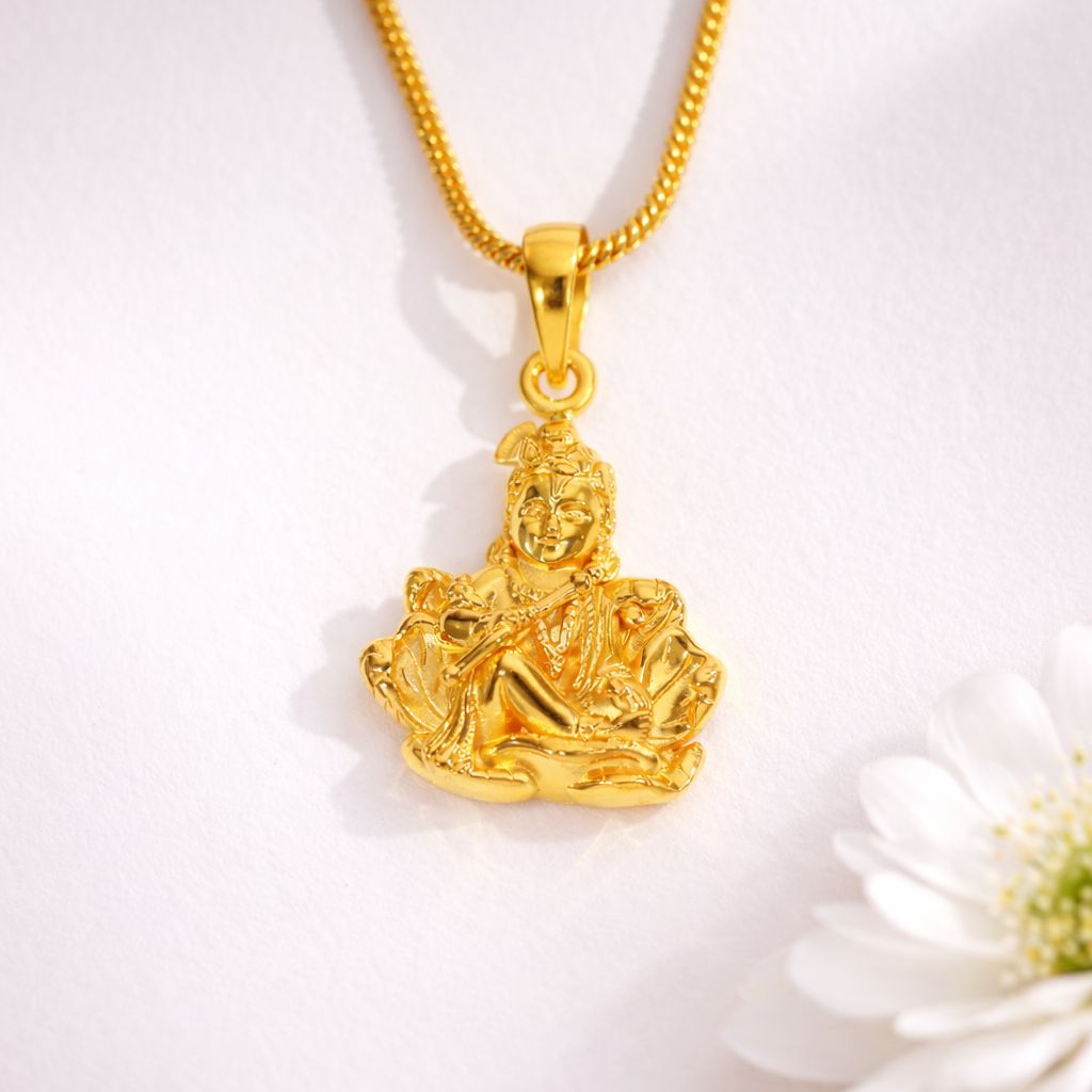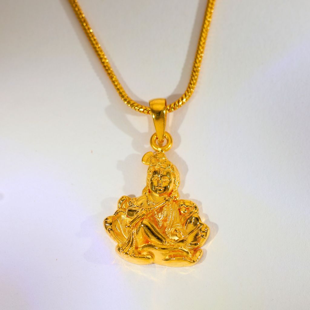 A beautiful devotional jewelry piece that brings the divine presence of Lord Krishna close to your heart. This elegant pendant reflects faith, tradition, and spiritual charm in pure gold craftsmanship.