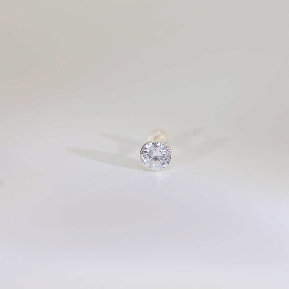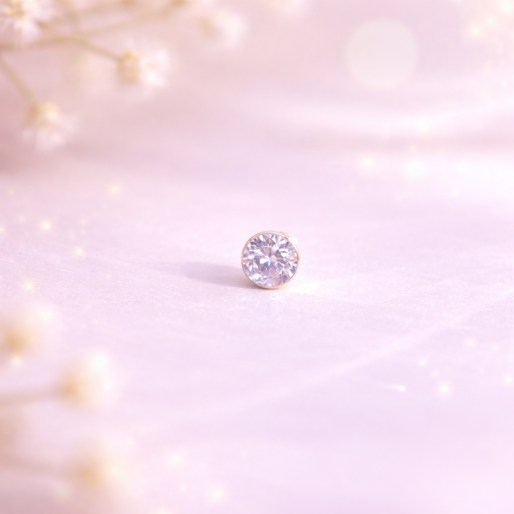 A refined and timeless nosepin featuring a brilliant round-cut stone that adds just the right amount of sparkle to your look. Designed for everyday elegance, it blends simplicity with shine effortlessly.