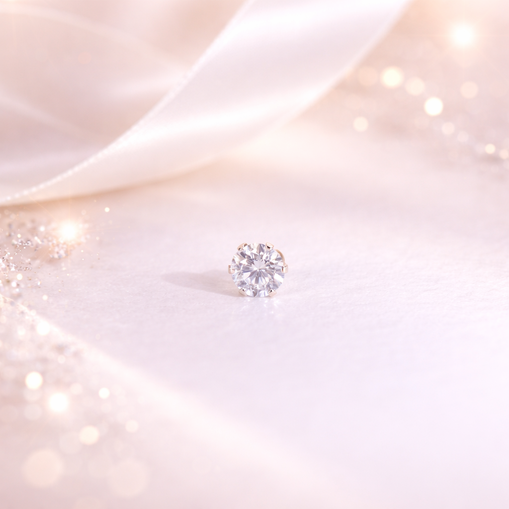 Design: A delicate round-cut solitaire nosepin crafted for minimal beauty. Its fine prong setting highlights the brilliance of the stone, making it a perfect everyday essential with a touch of luxury.