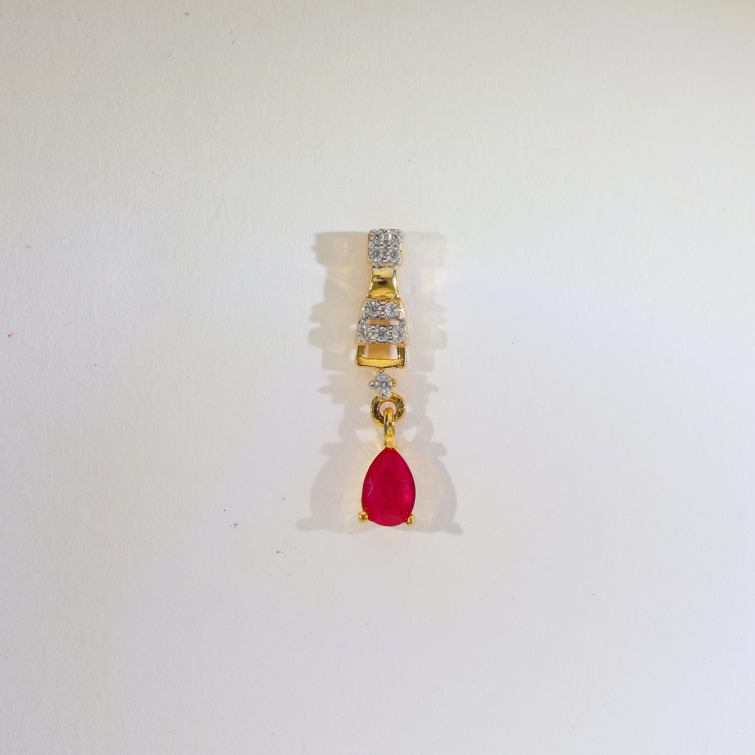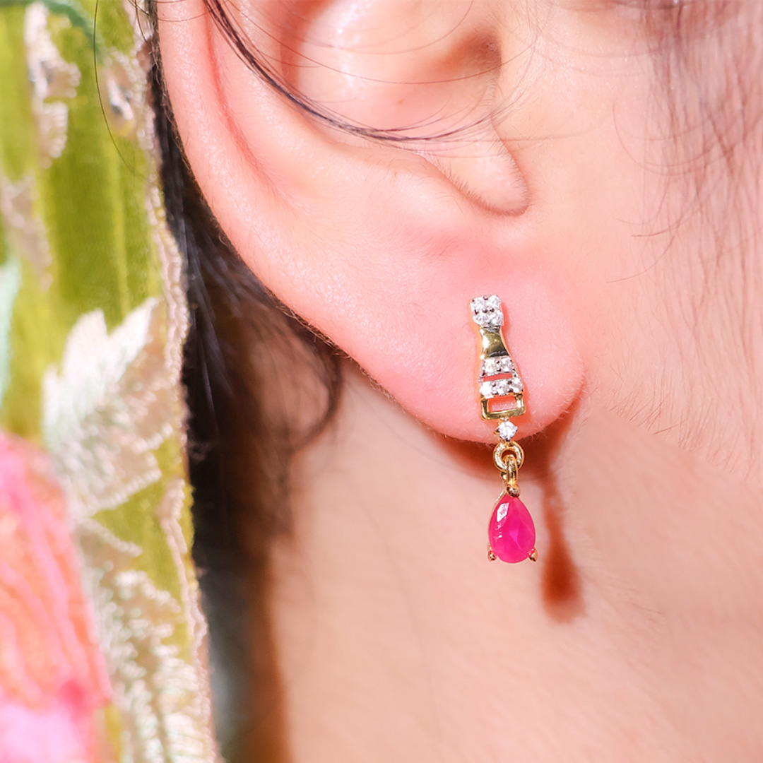 ✔ CZ squares + ruby-pink teardrop