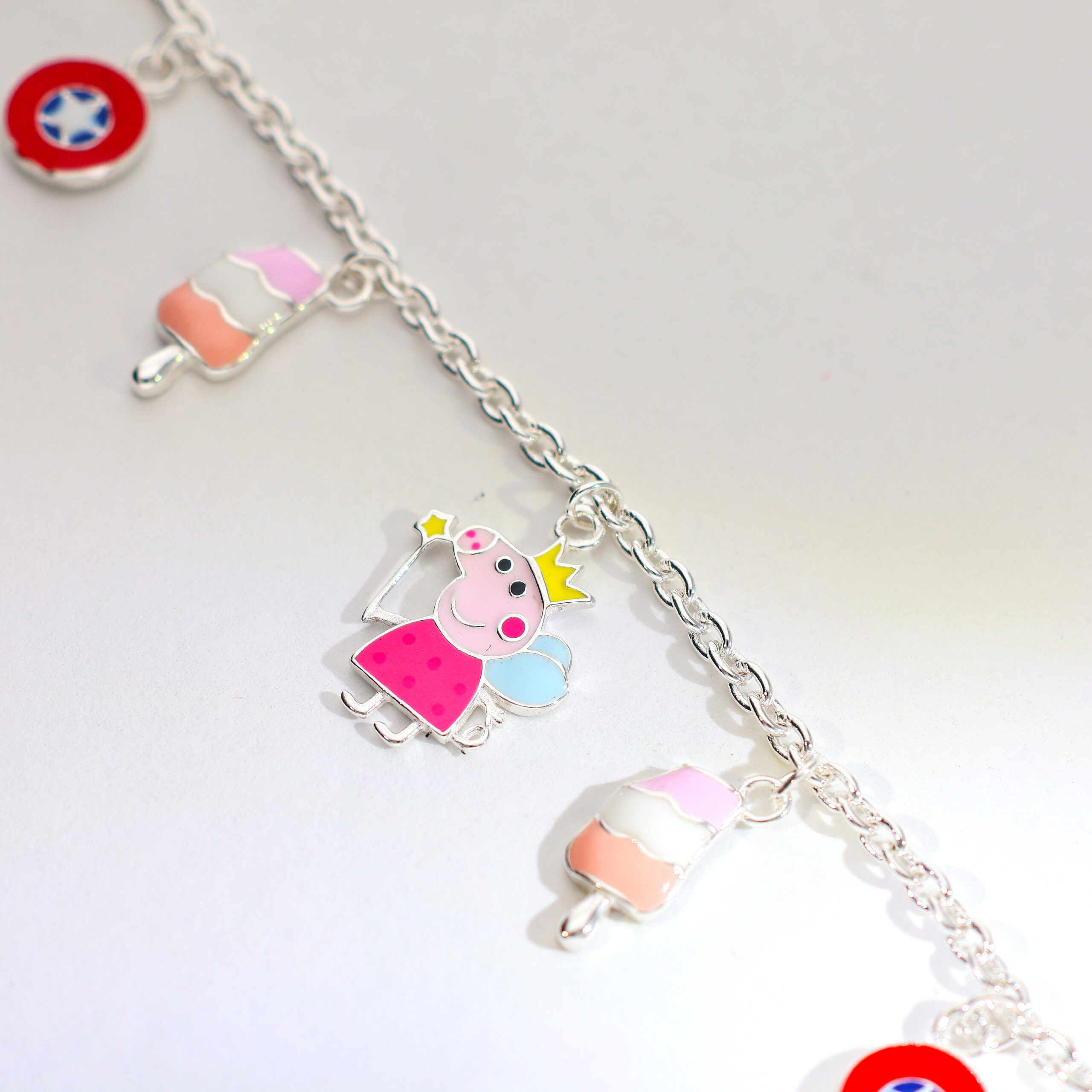 Design: Pure silver chain with a cute fairy charm, soft-pastel ice-cream pops, and a tiny star shield—made light and comfy for small wrists.
