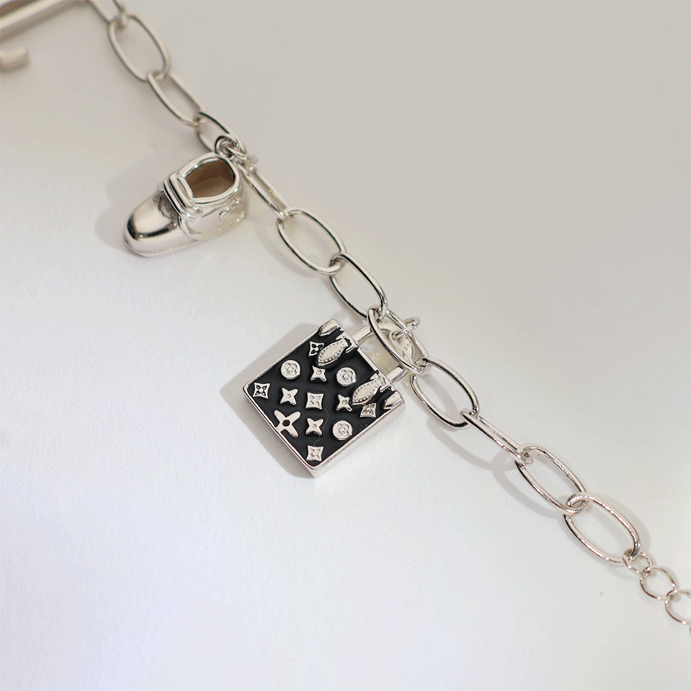 Design: Crafted in pure 92.5 silver, this bracelet features trendy charms like a key, letter, shoe, and bag, giving a chic and fashionable vibe.