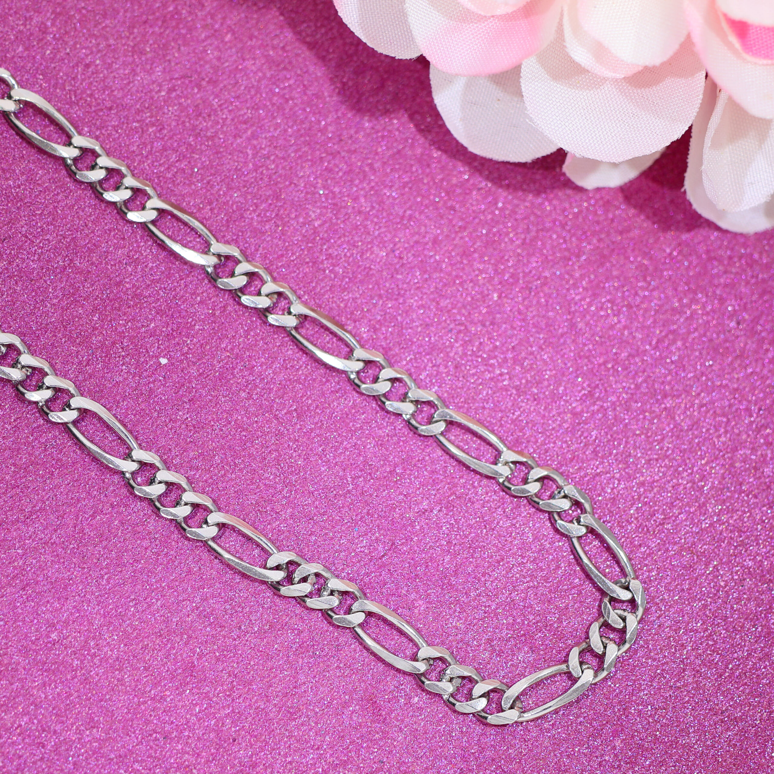 Design: Crafted in 92.5 silver, this chain uses a flat 3-short-links + 1-long-link pattern with a bright polish and a secure lobster clasp. It sits flat and feels smooth on skin.