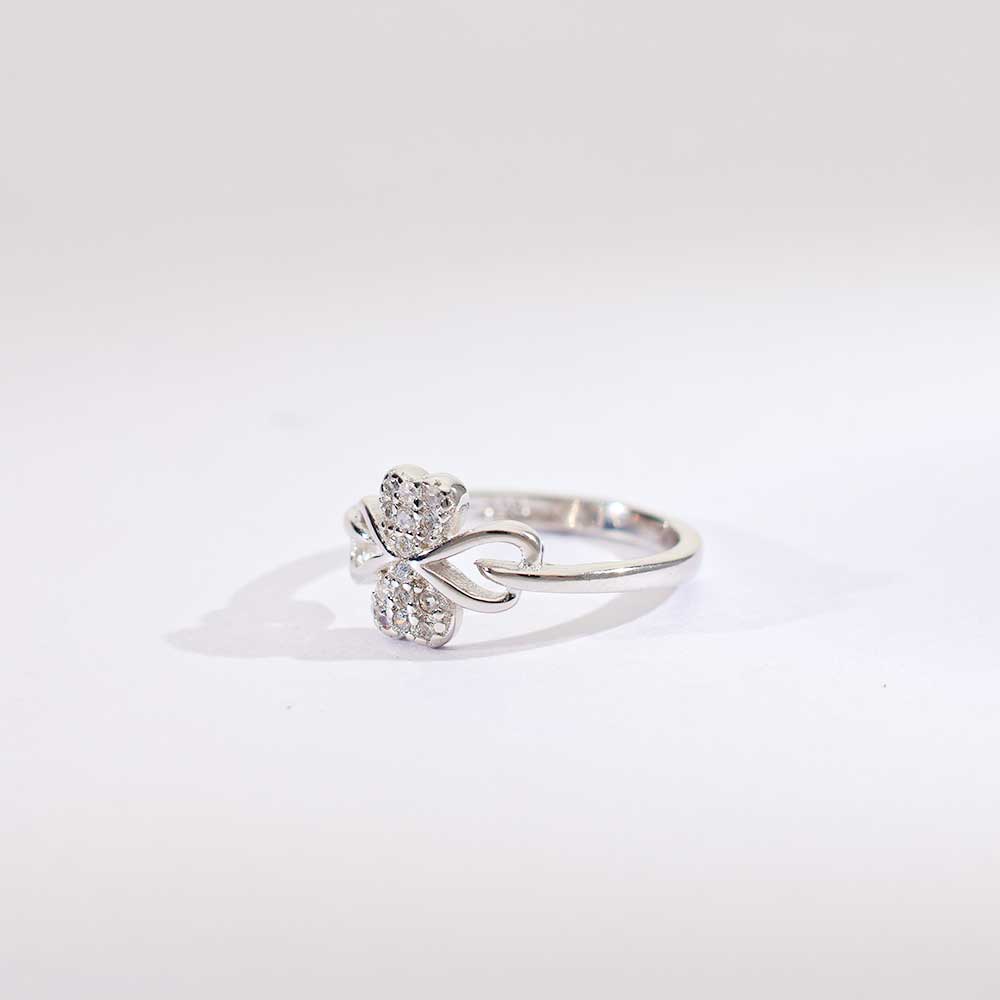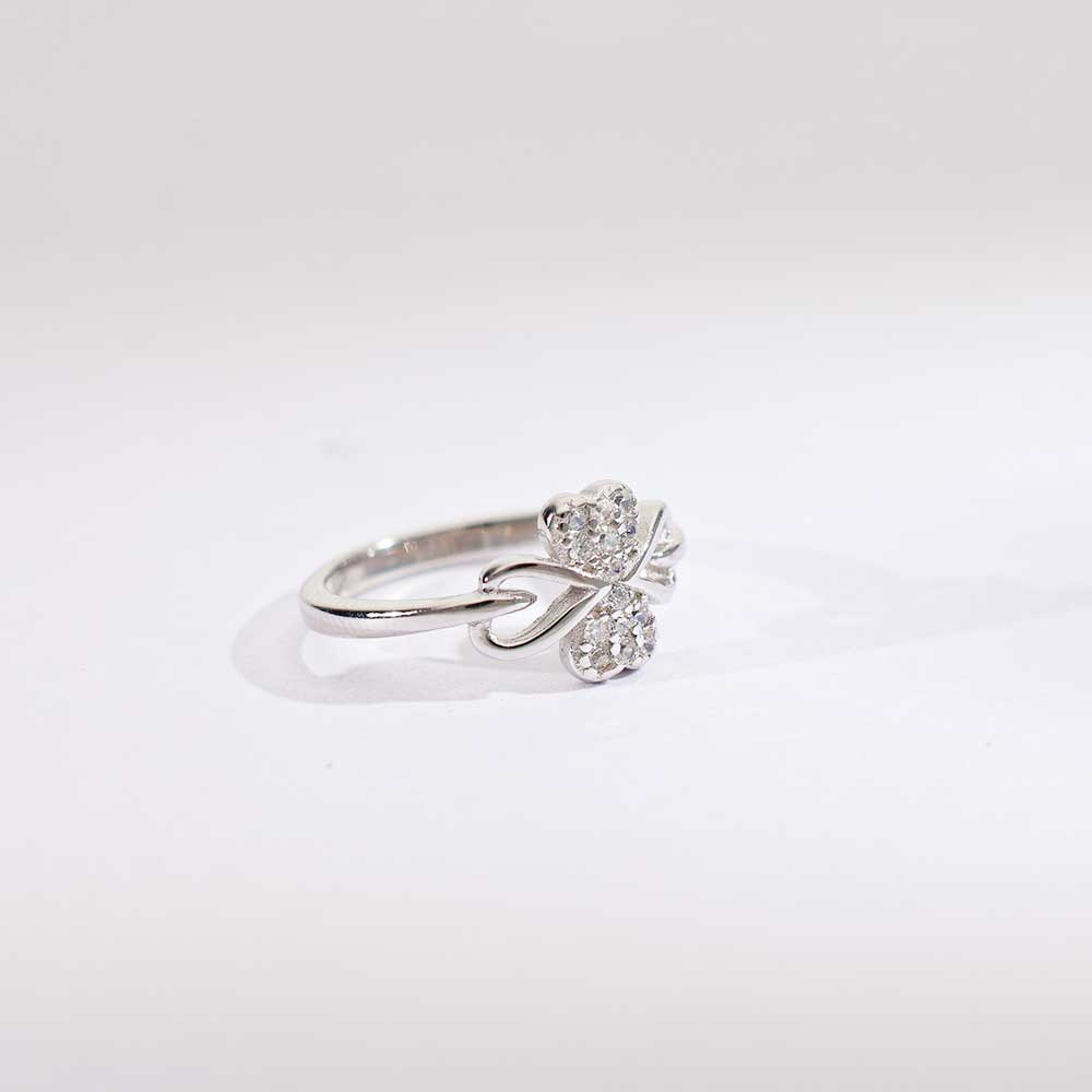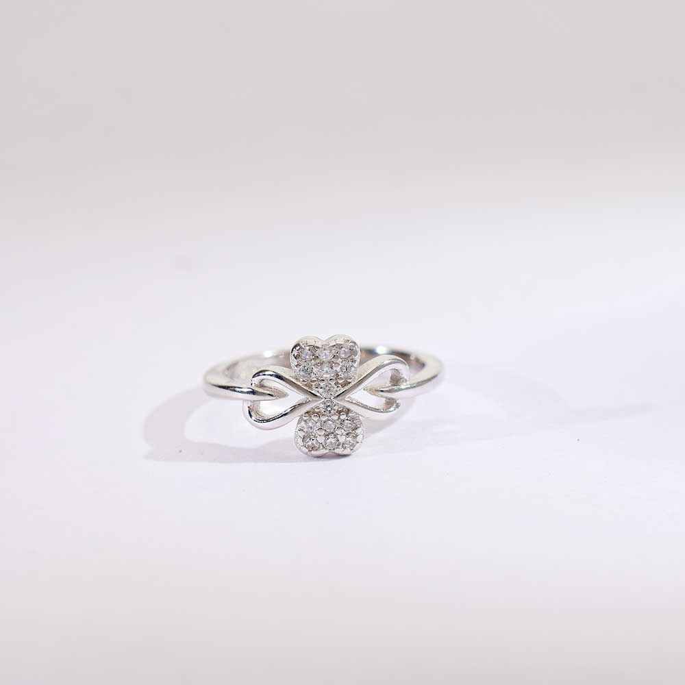 Designed with twin pavé hearts joined by an infinity twist, this baby ring symbolizes lasting love and gentle strength.