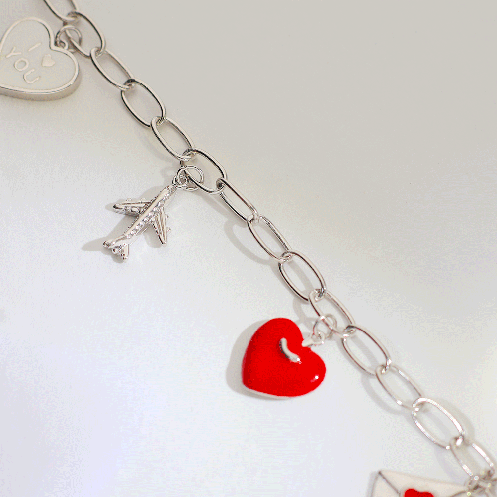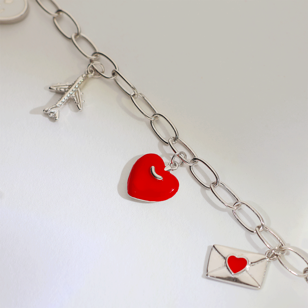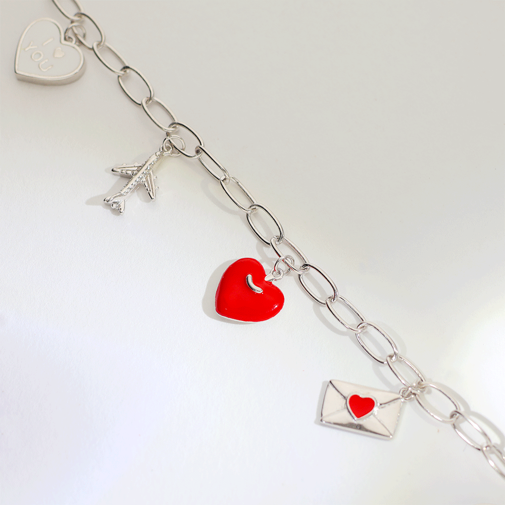 Design: This bracelet is designed with a bold red heart and envelope charm, giving a cute and meaningful look.