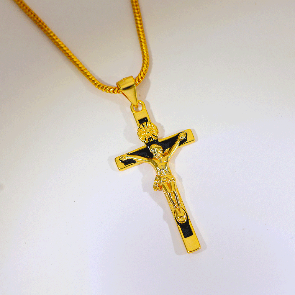 Design: A premium 92.5 silver pendant featuring Jesus on the cross with black enamel highlights, giving a bold and elegant look.