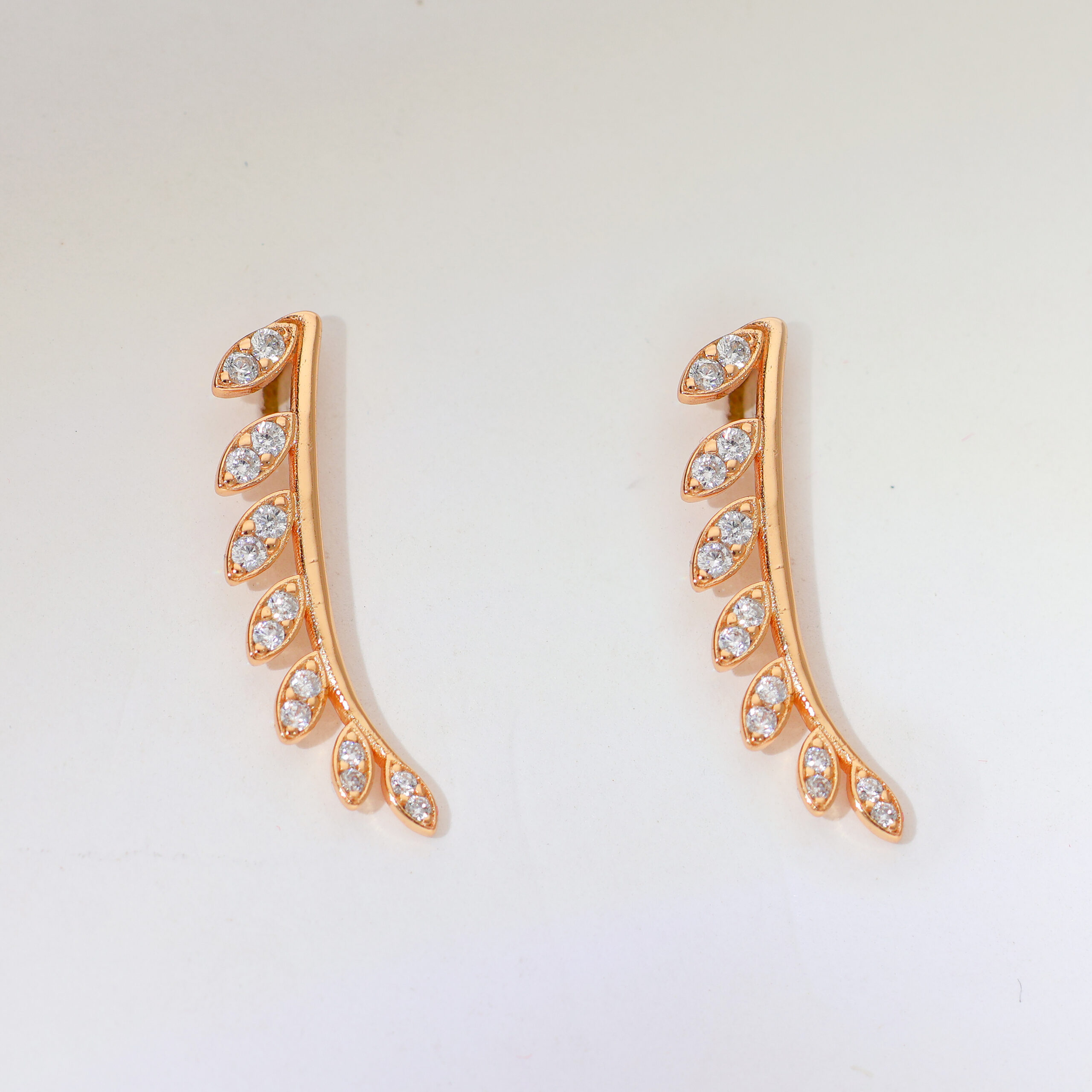Design: Crafted in 92.5 silver with a rosegold finish. Marquise CZ leaves sit along a soft curve for a clean ear-climber look that feels comfy all day.