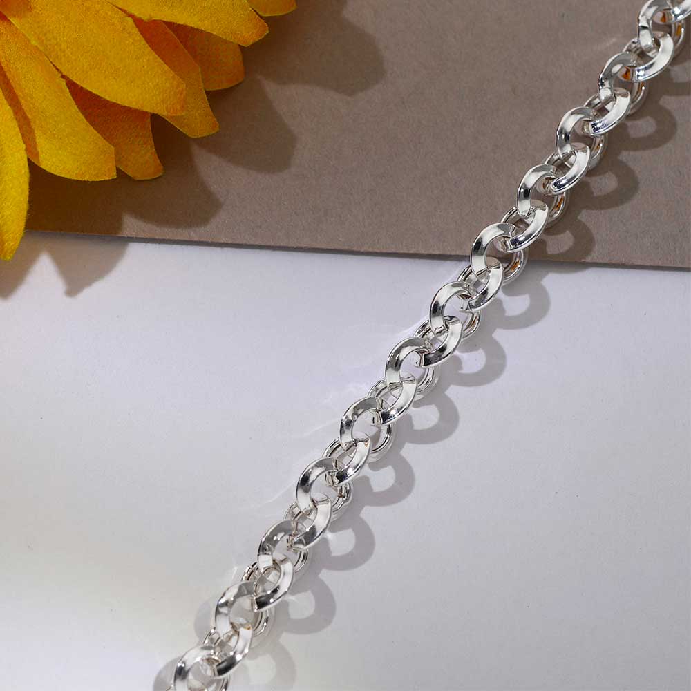 Design: Even rolo links with soft edges; high polish for extra shine; sturdy clasp keeps it safe.