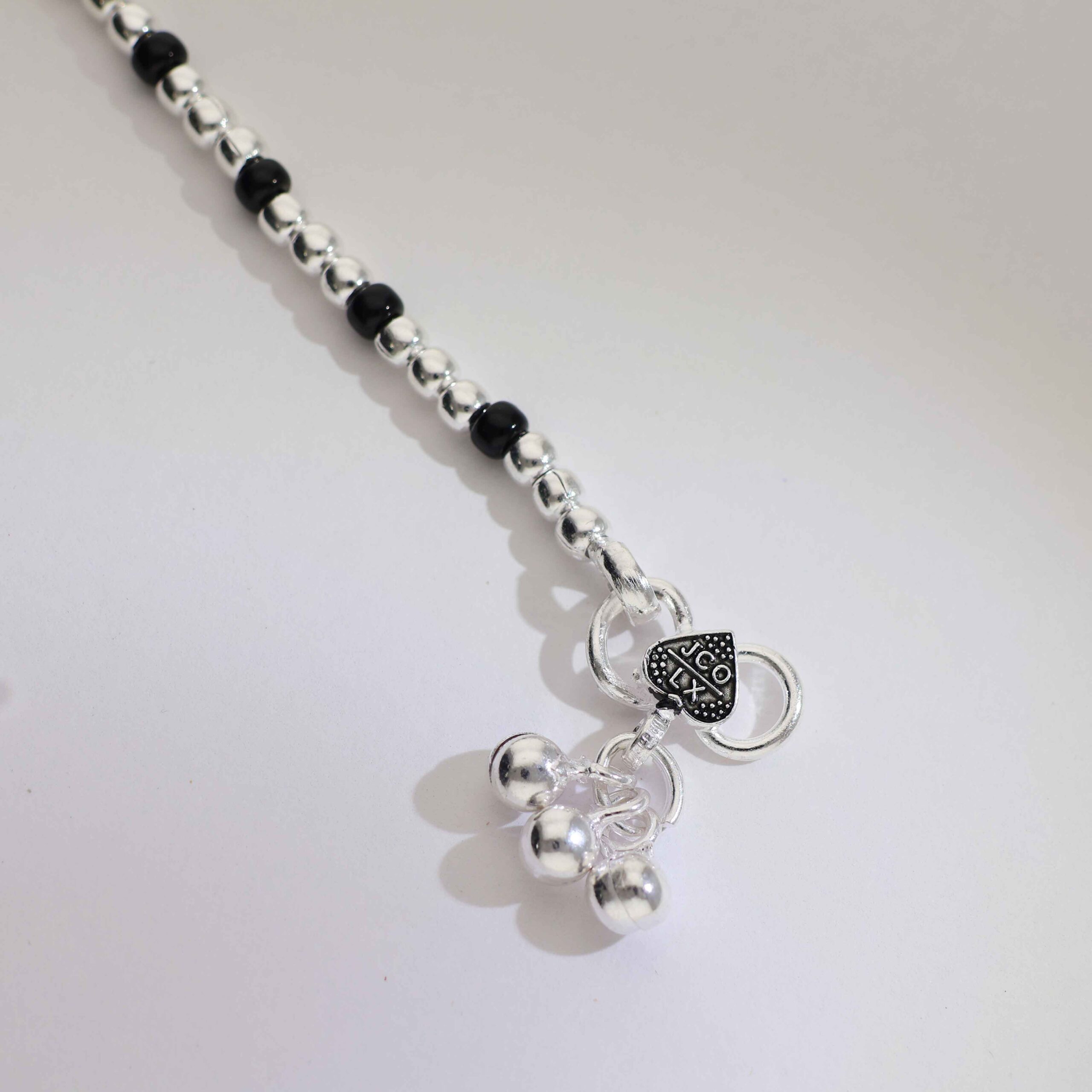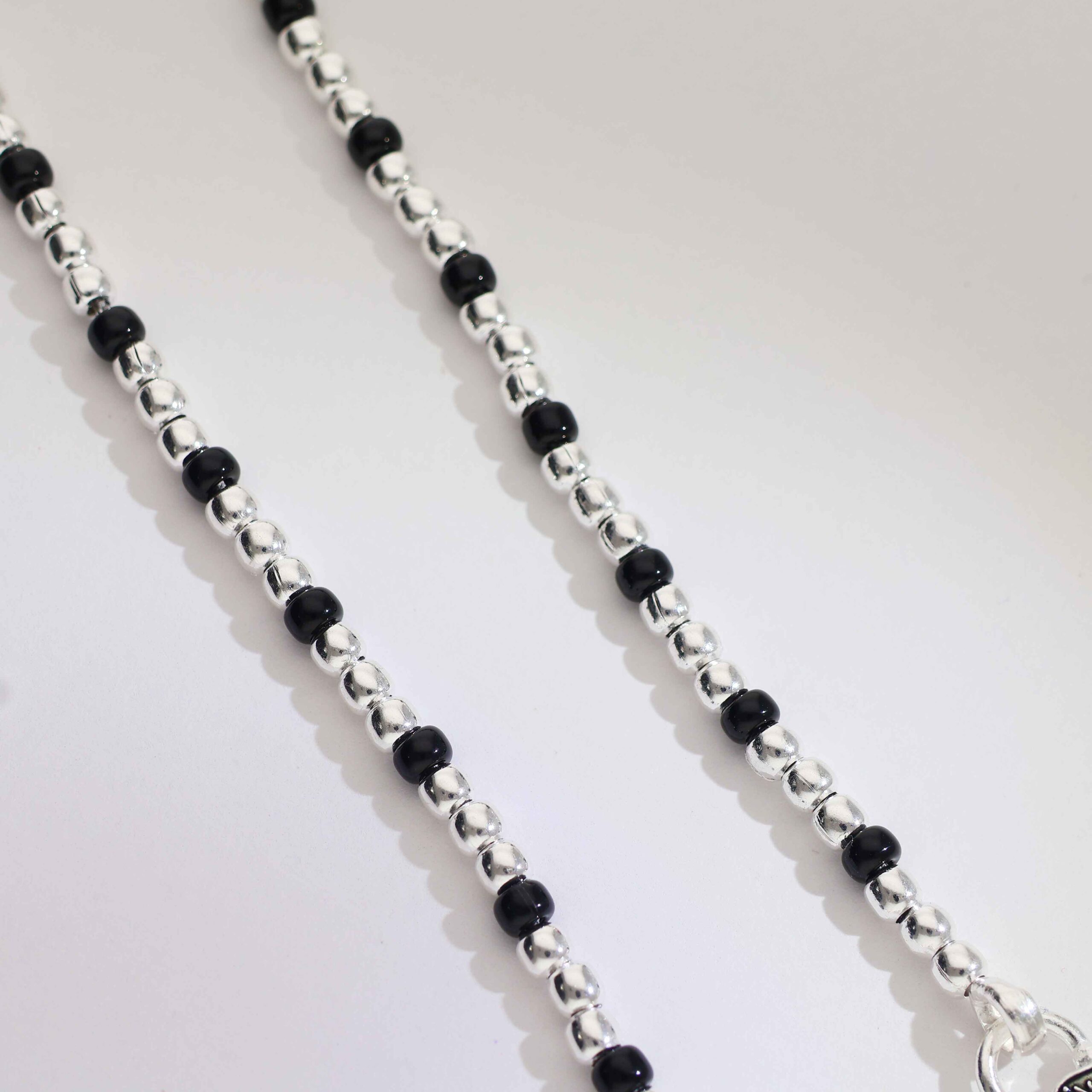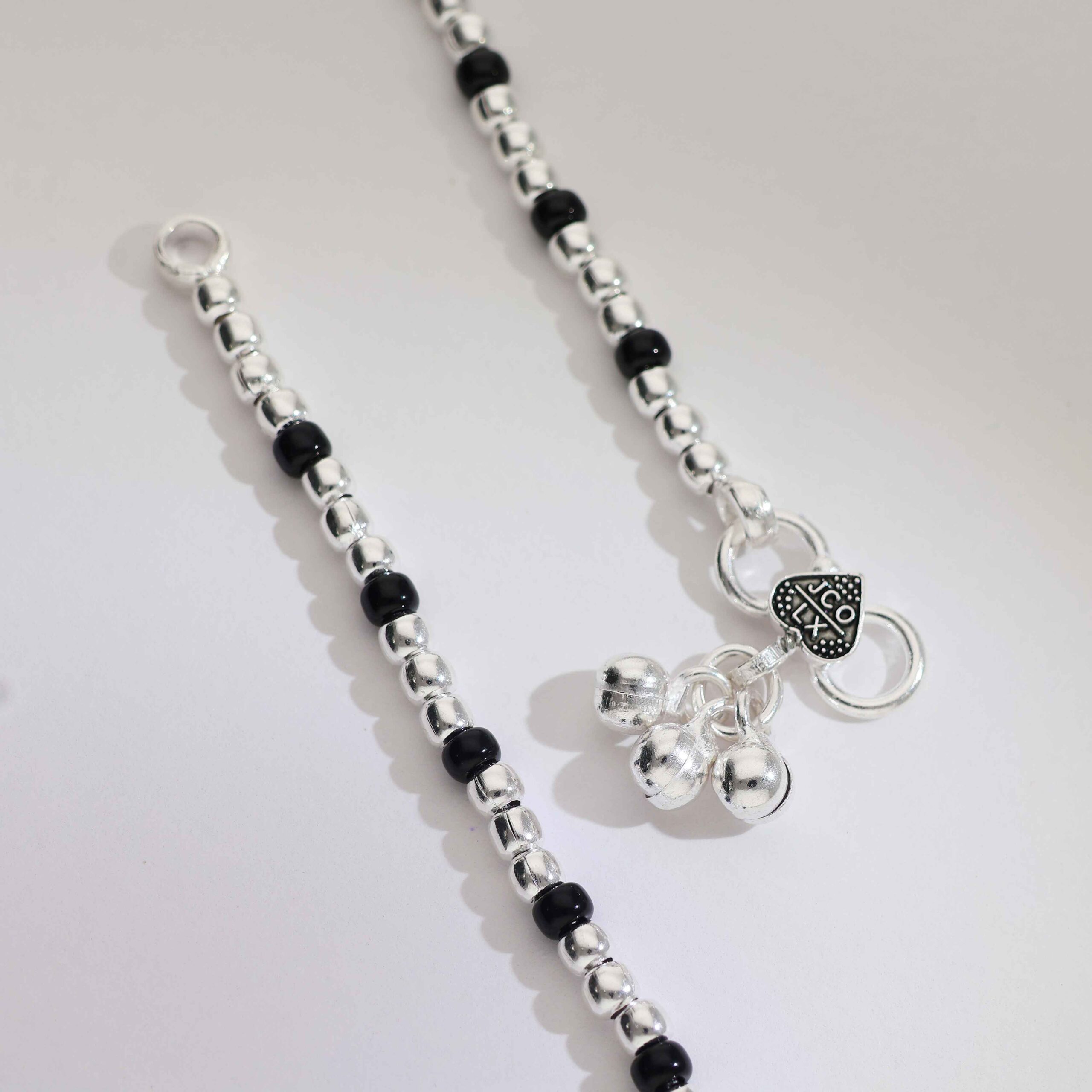 Crafted with alternating black and silver beads, finished with cute dangling charms.