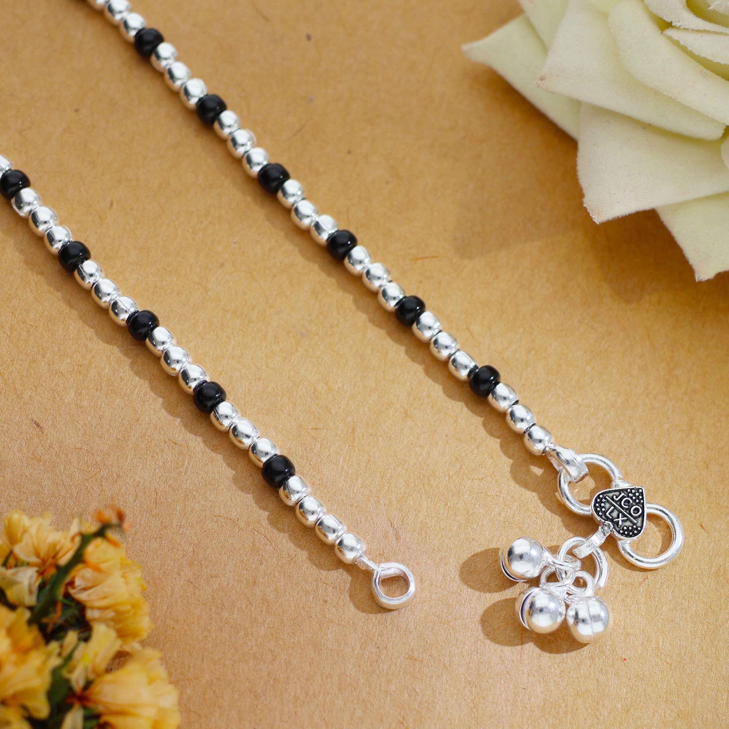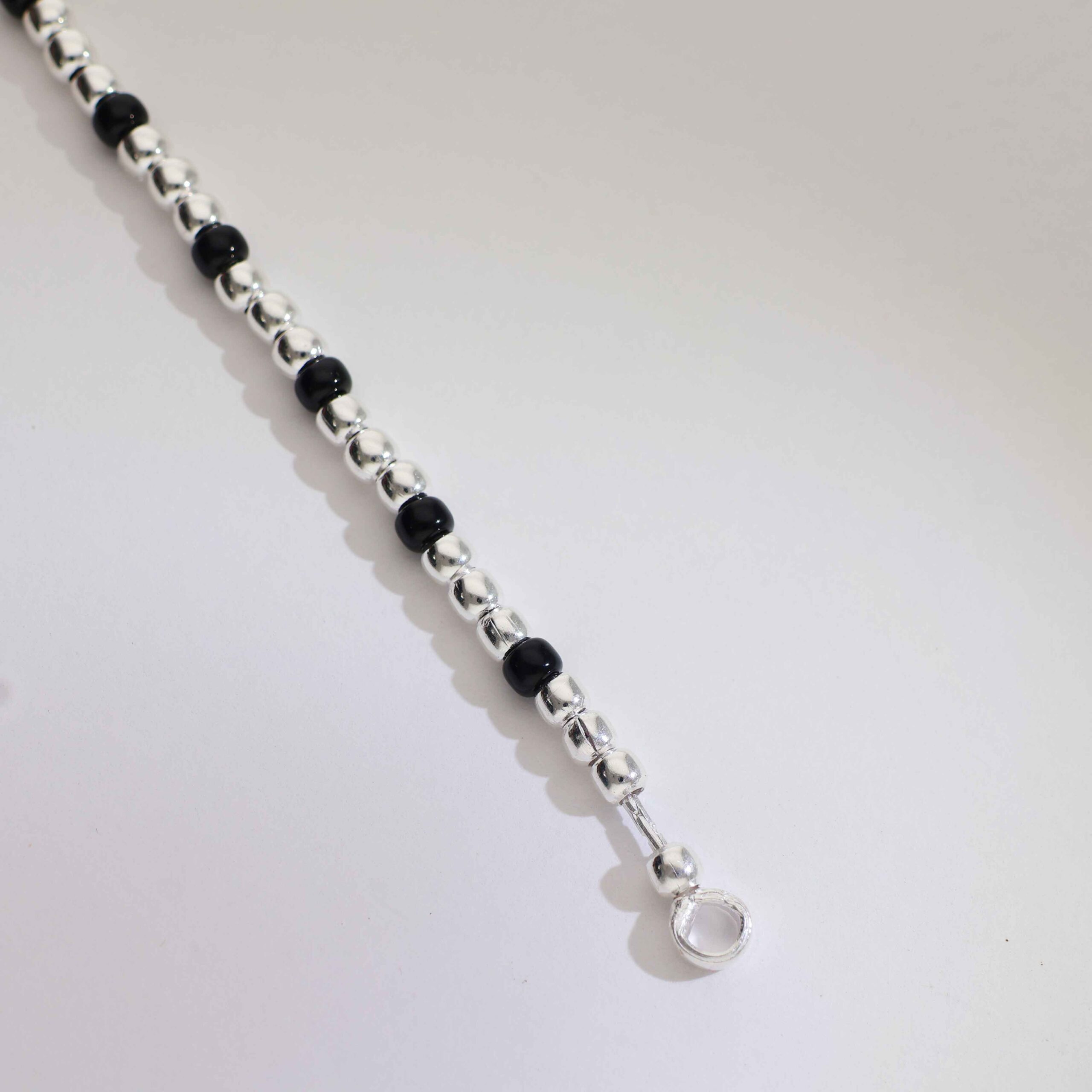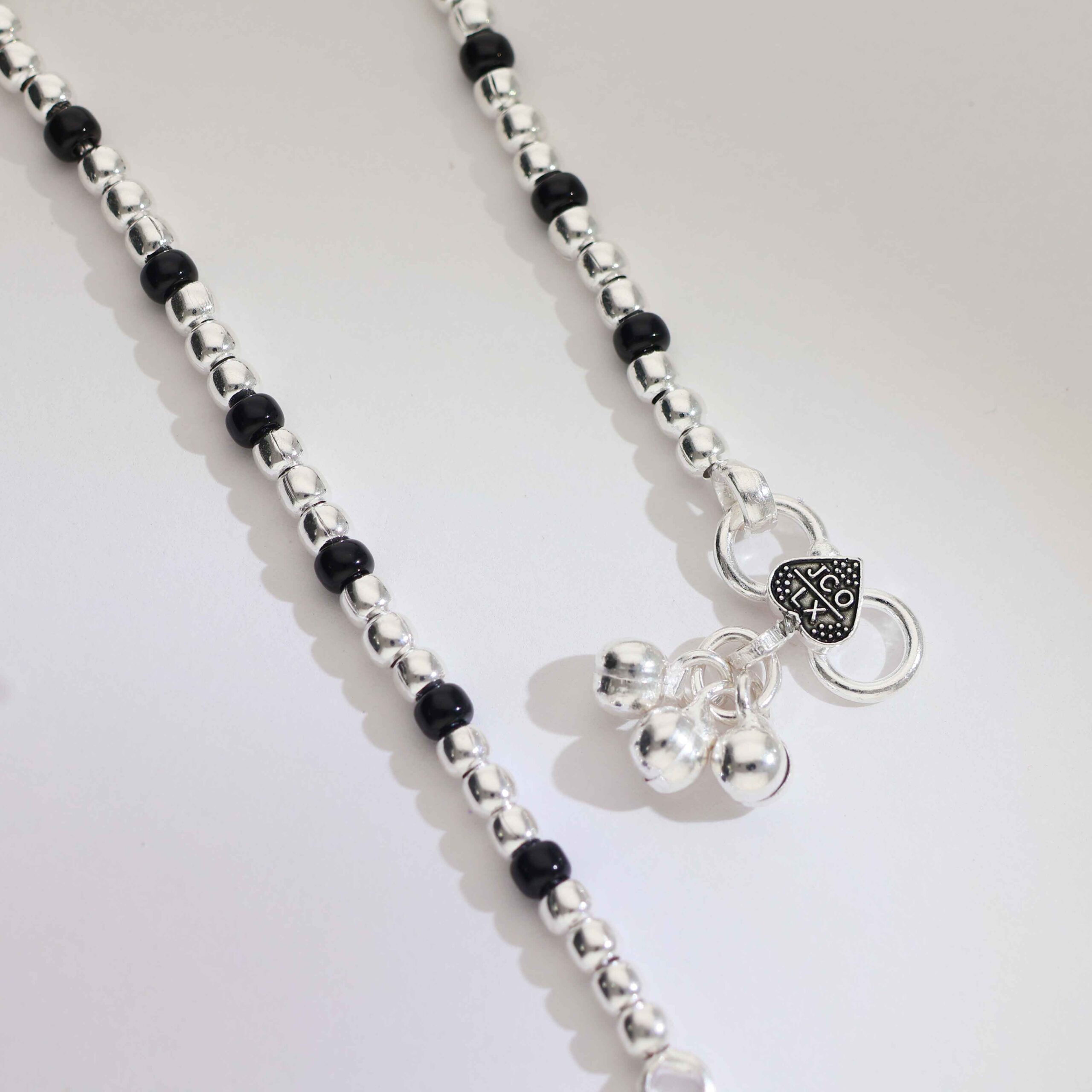 Crafted with alternating black and silver beads, finished with cute dangling charms.