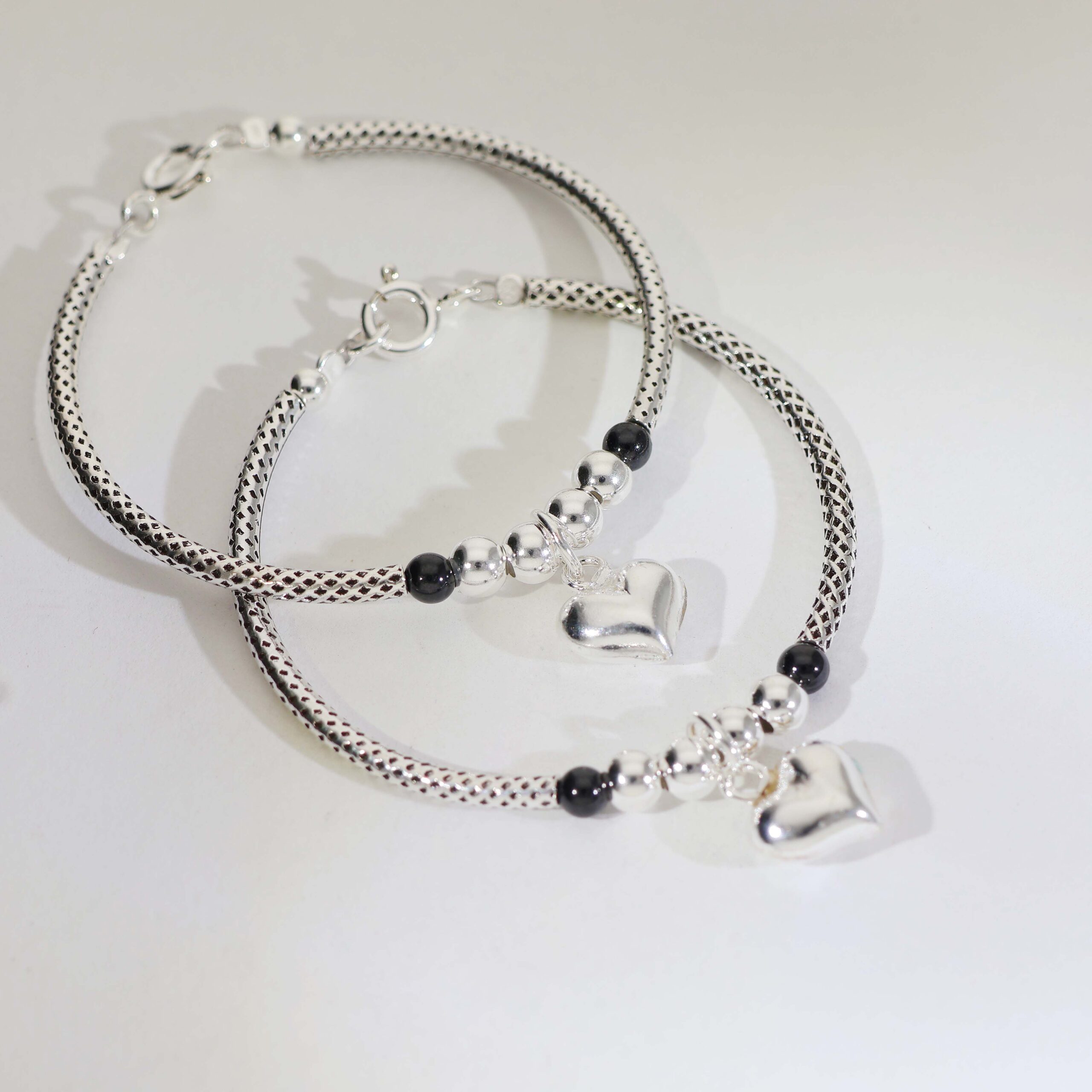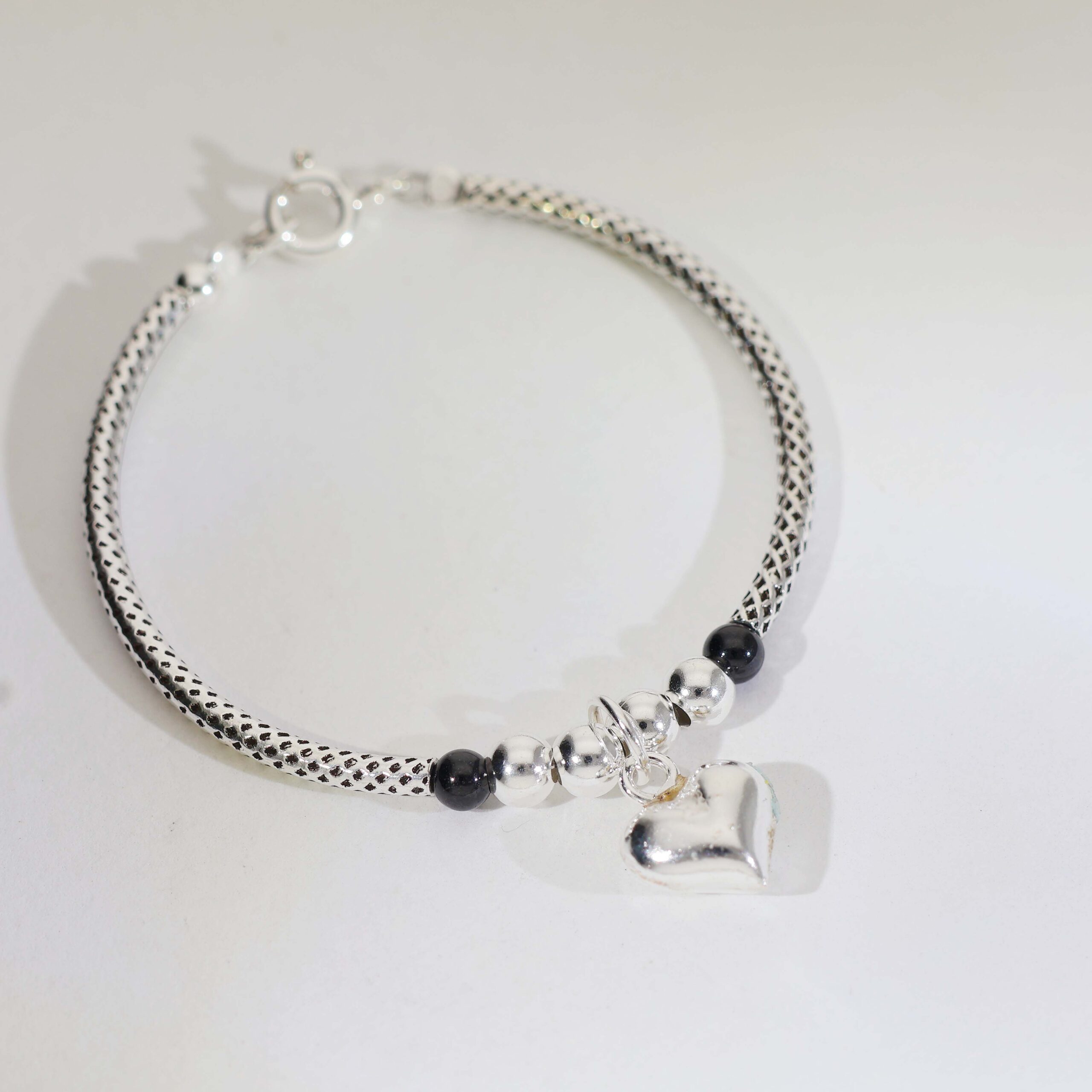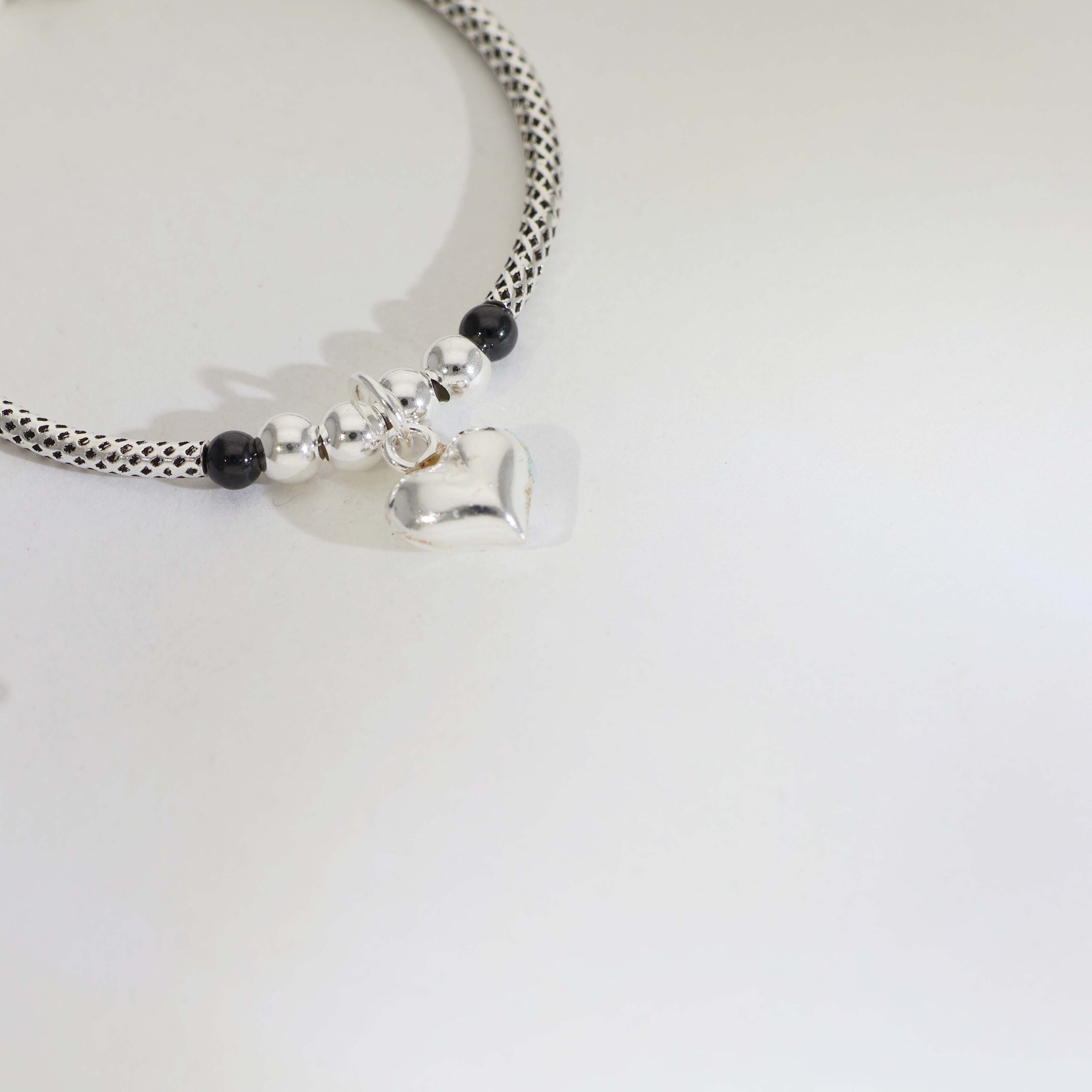 ✔ Black accent beads + silver heart charm