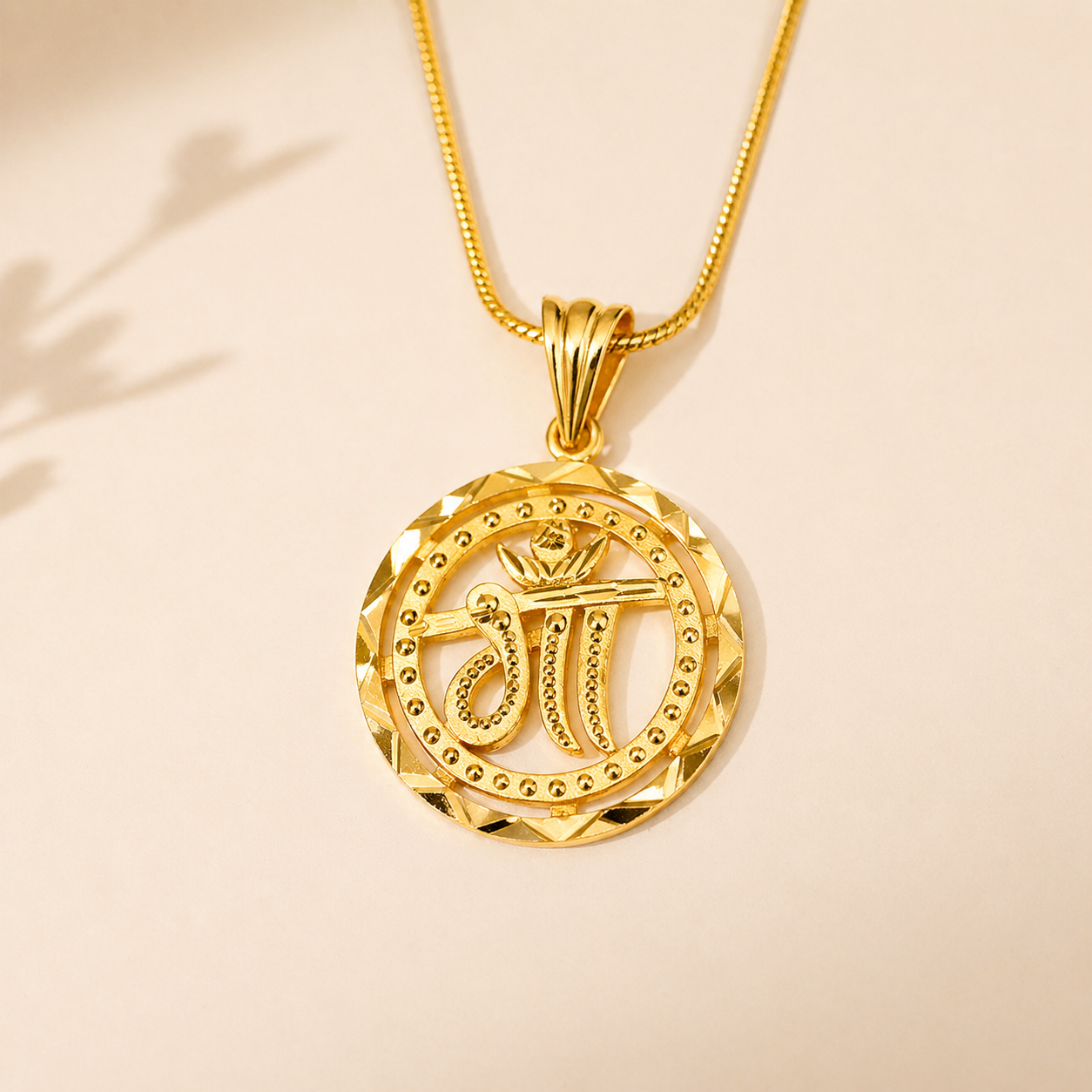 Design: Features a stylish “Maa” motif inside a circular gold frame with detailed textured borders for a soft and elegant look.