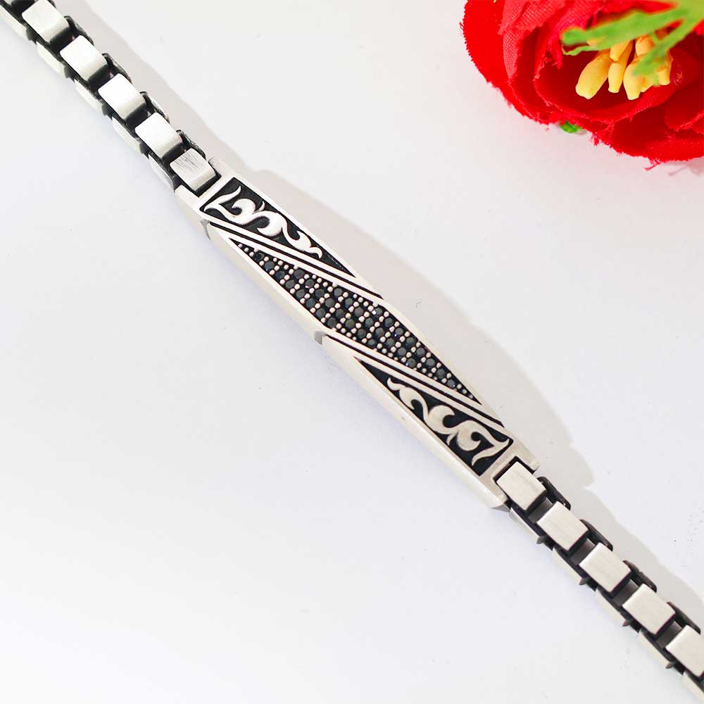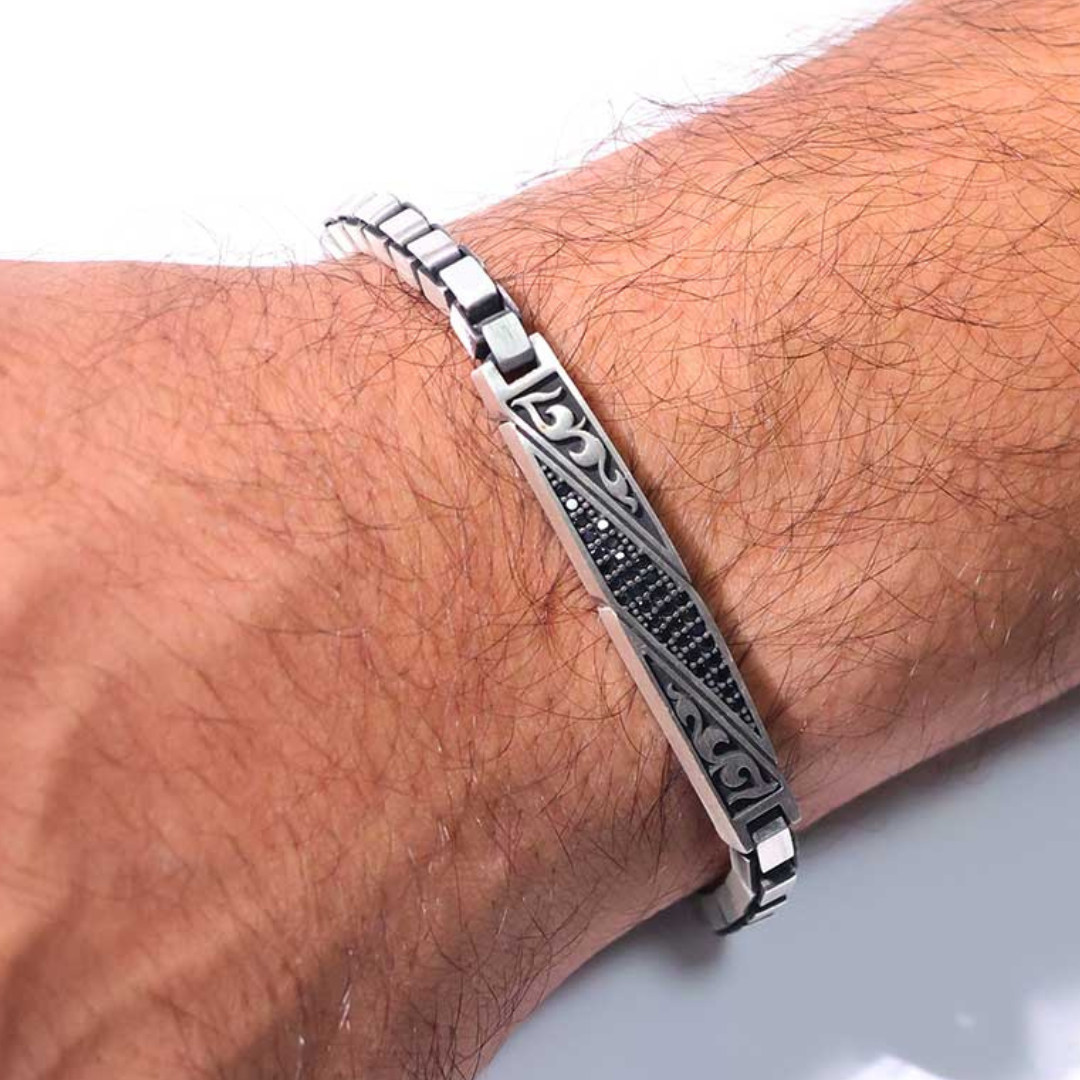 Inspired by the spirit of heritage and masculinity, this bracelet blends traditional artistry with a modern edge. The engraved patterns echo timeless cultural motifs, while the polished silver surface ensures a refined contemporary appeal.