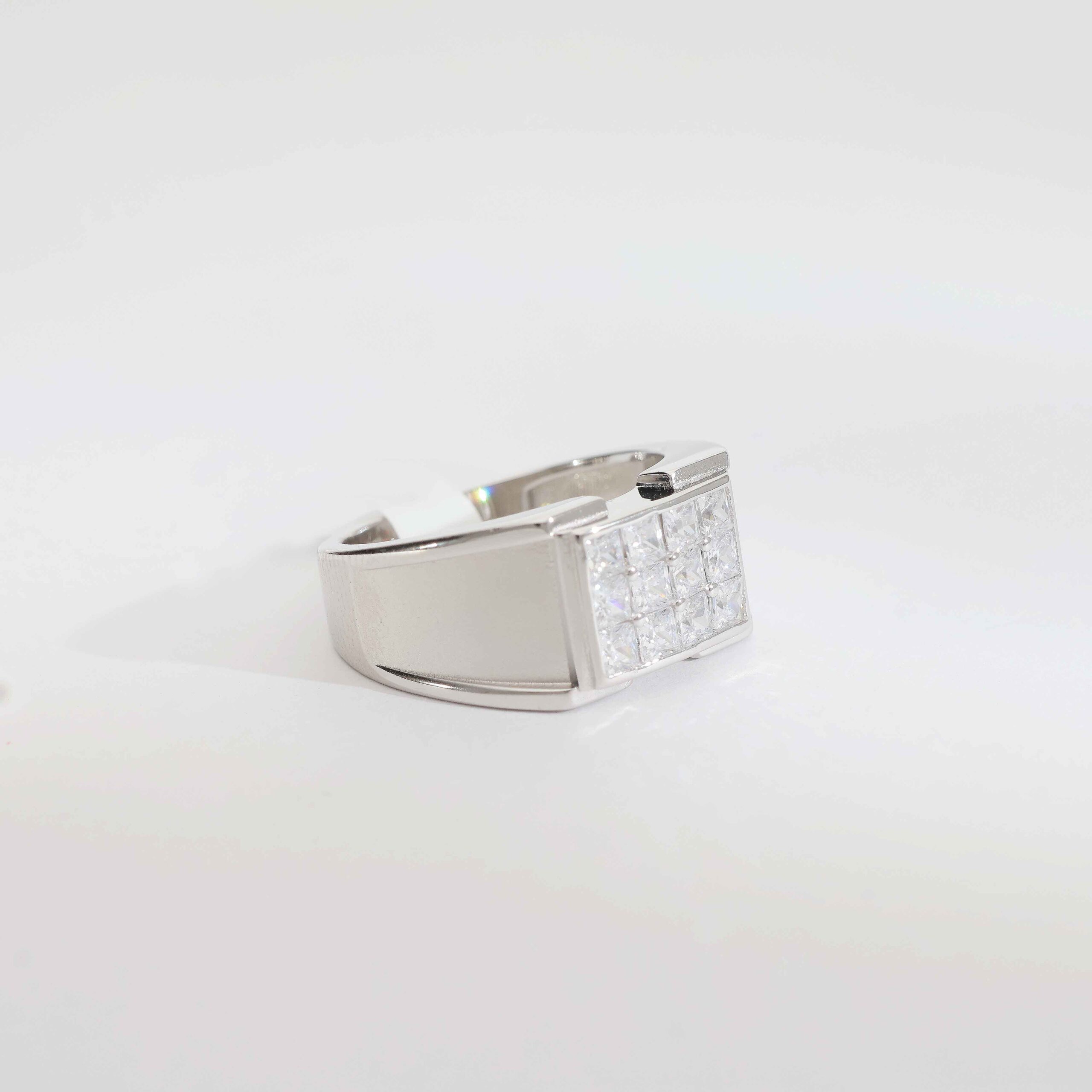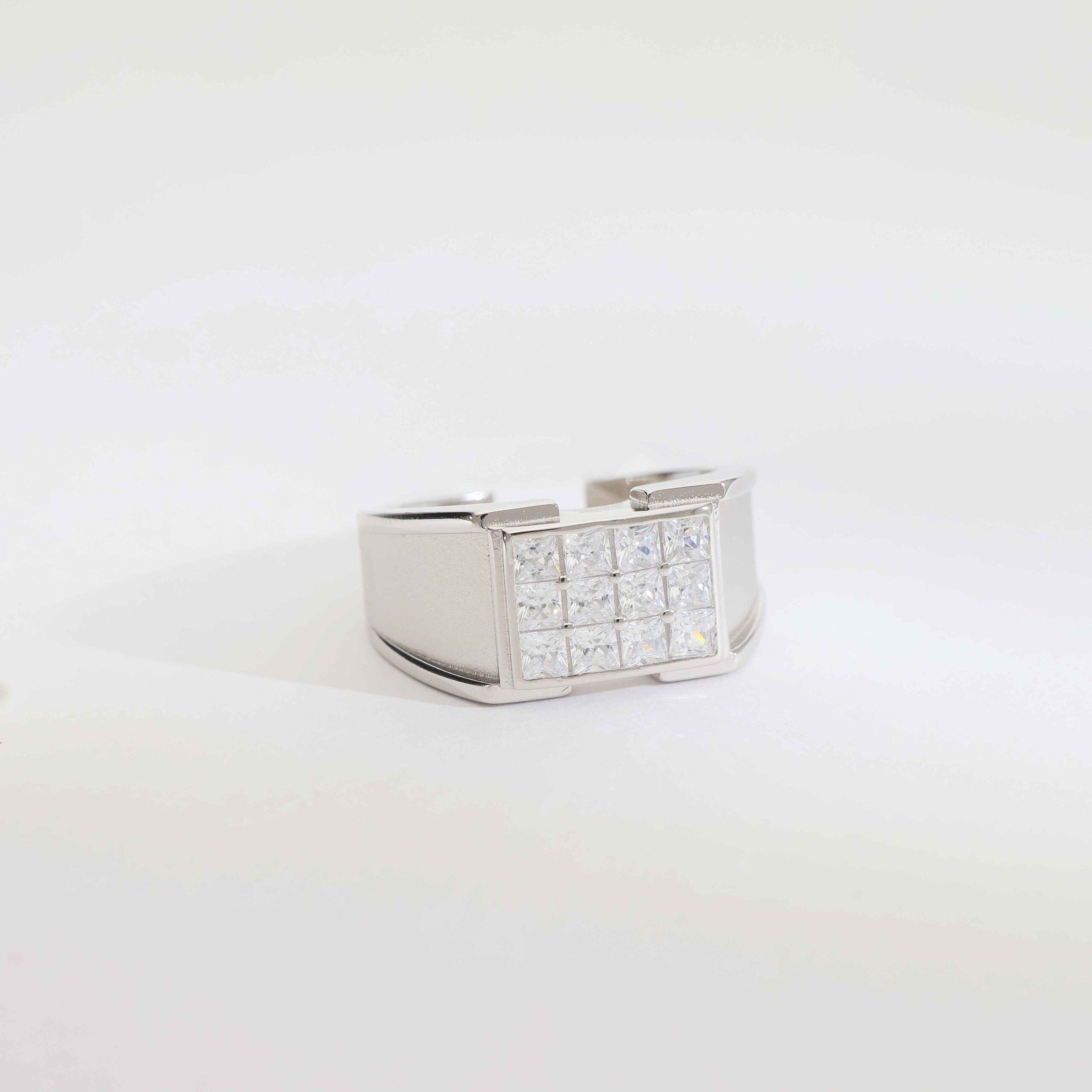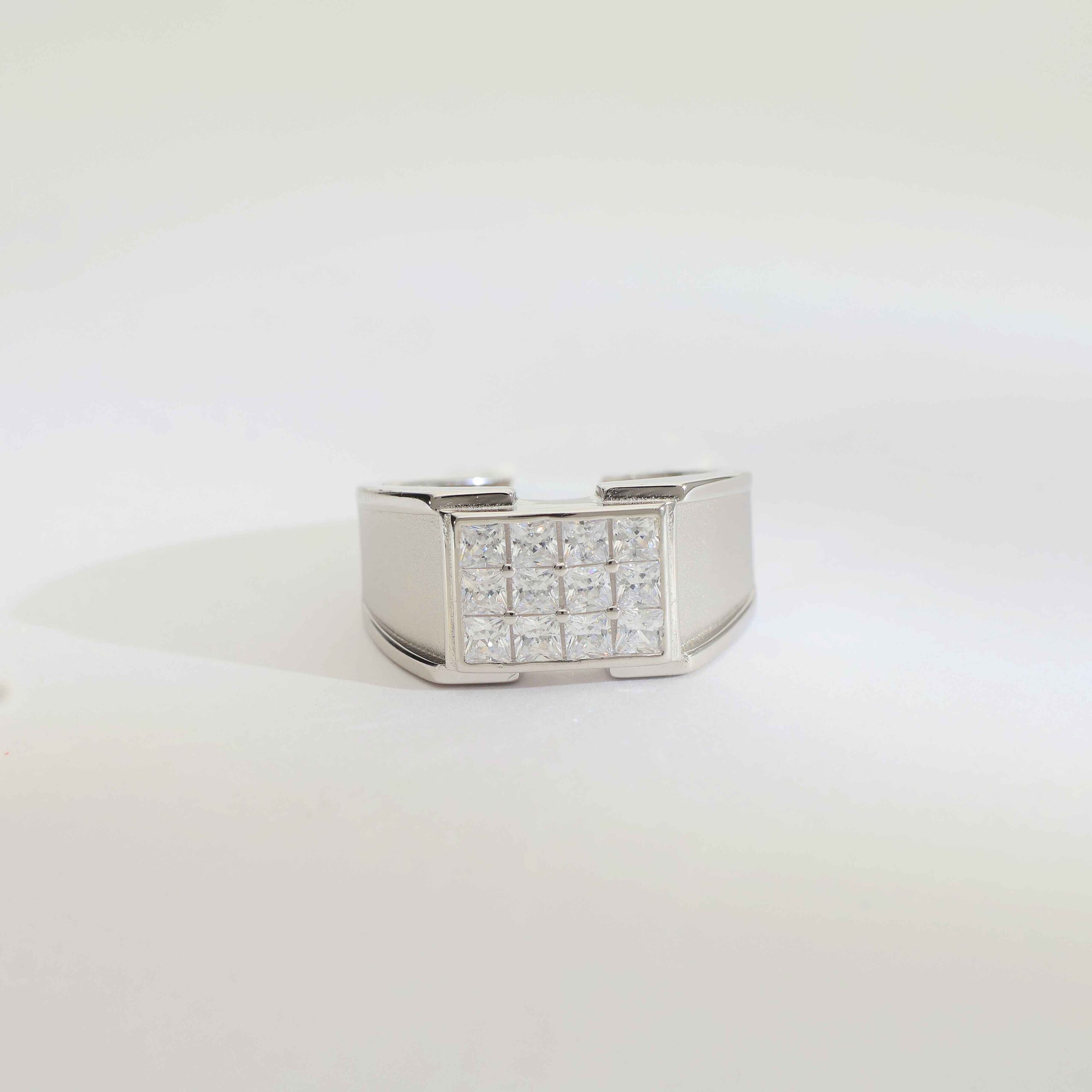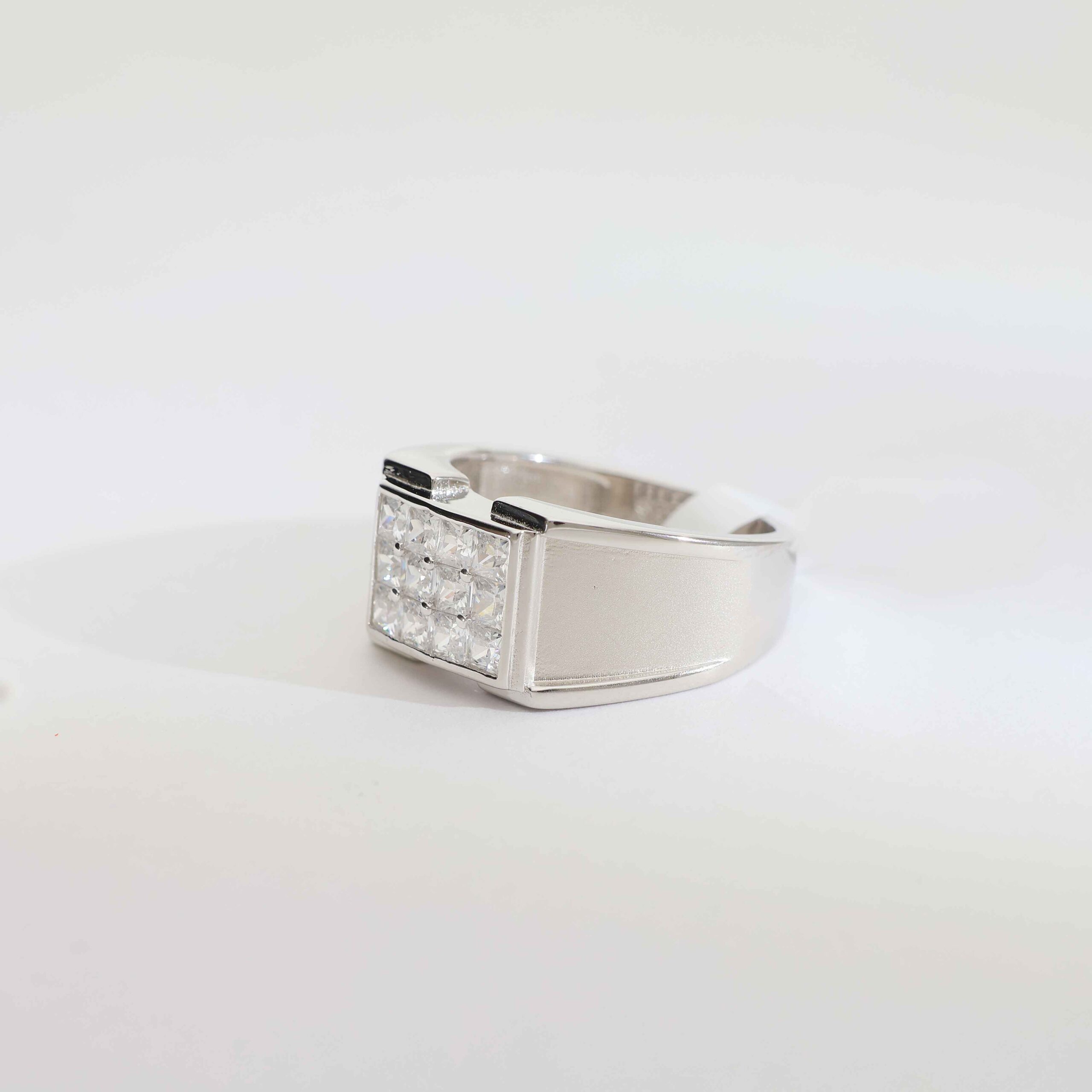 PowerBlock Silver Gents Ring is designed for men who like a strong and solid look. The bold front block with stones gives a powerful first impression. Its simple lines and heavy feel make it a great choice for business meetings, functions or everyday style.