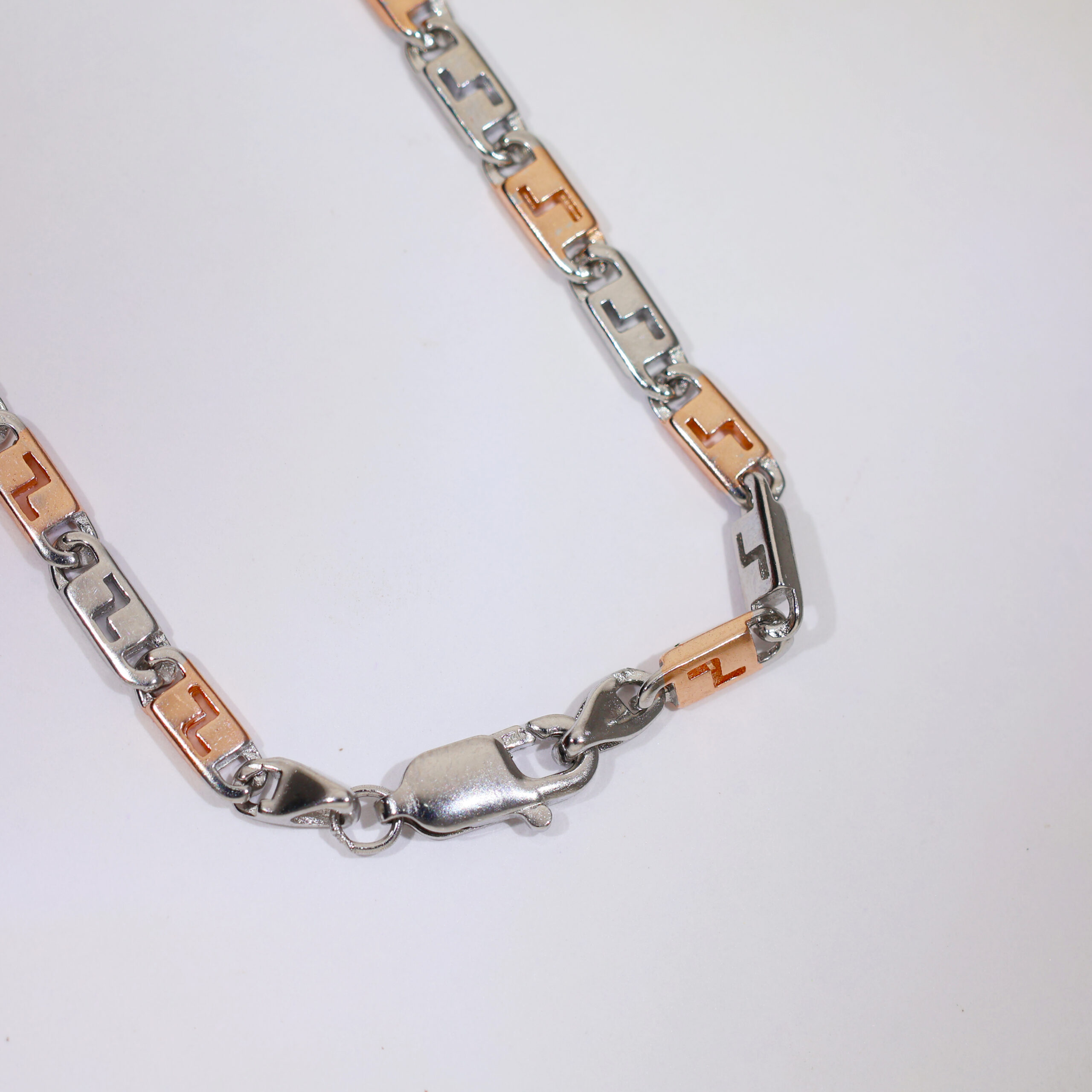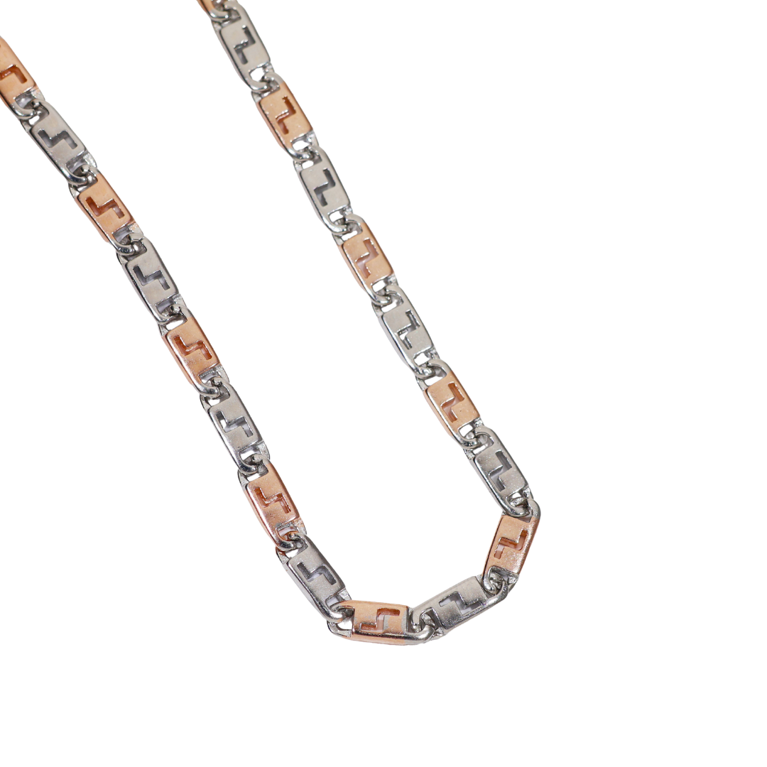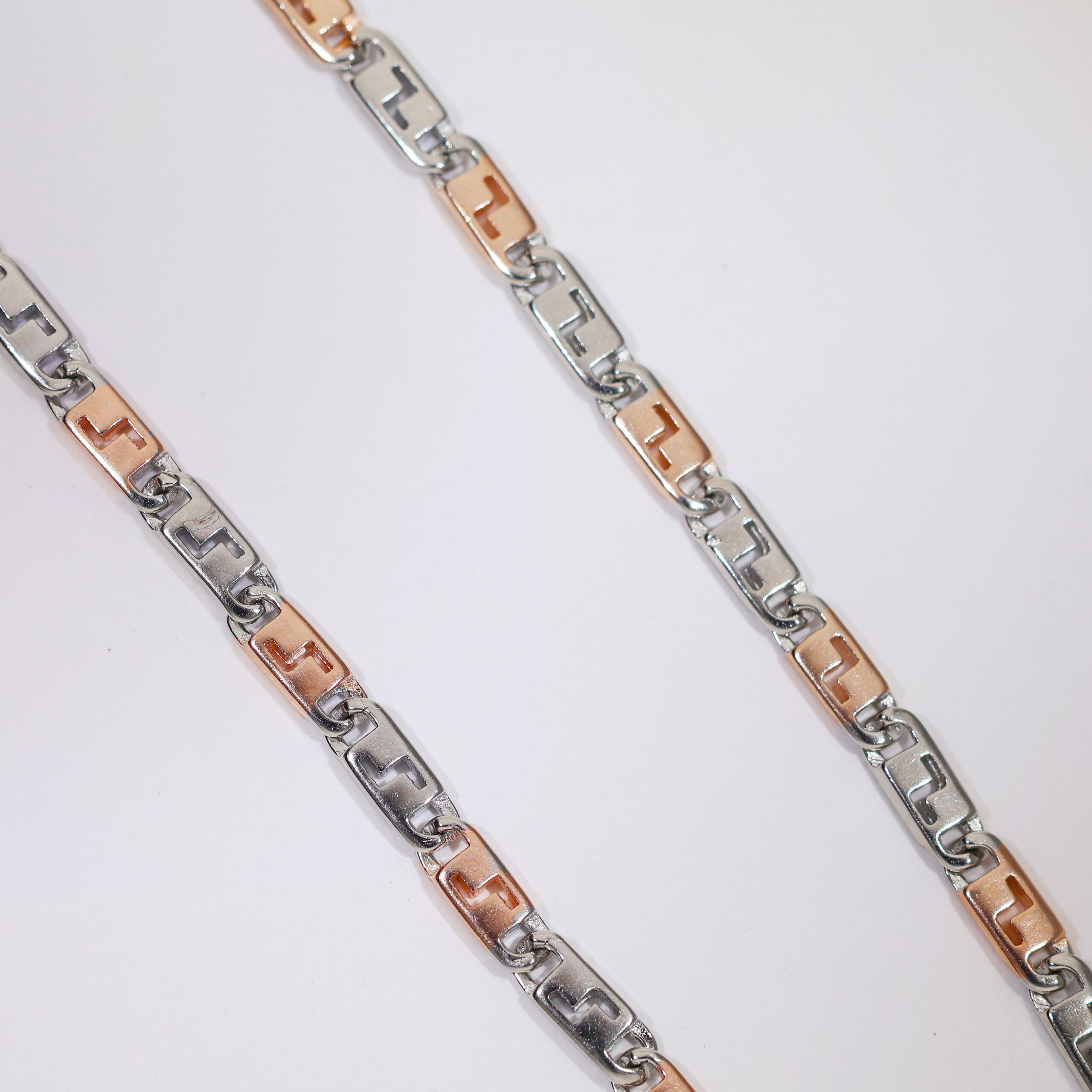 Design: Slim rectangular plates in rose and silver finish connect with polished joints, giving this chain a flat, comfortable lay and bright reflection.