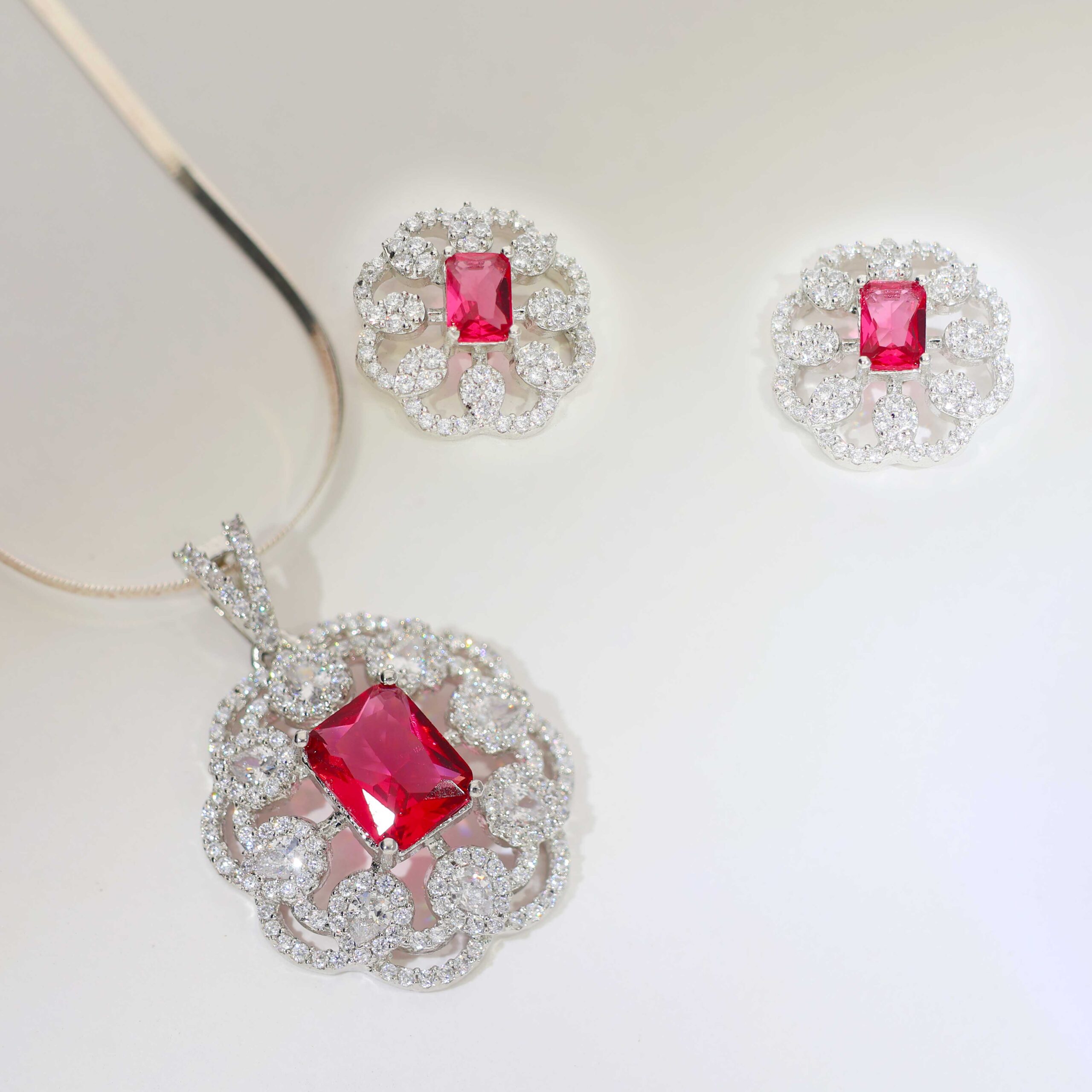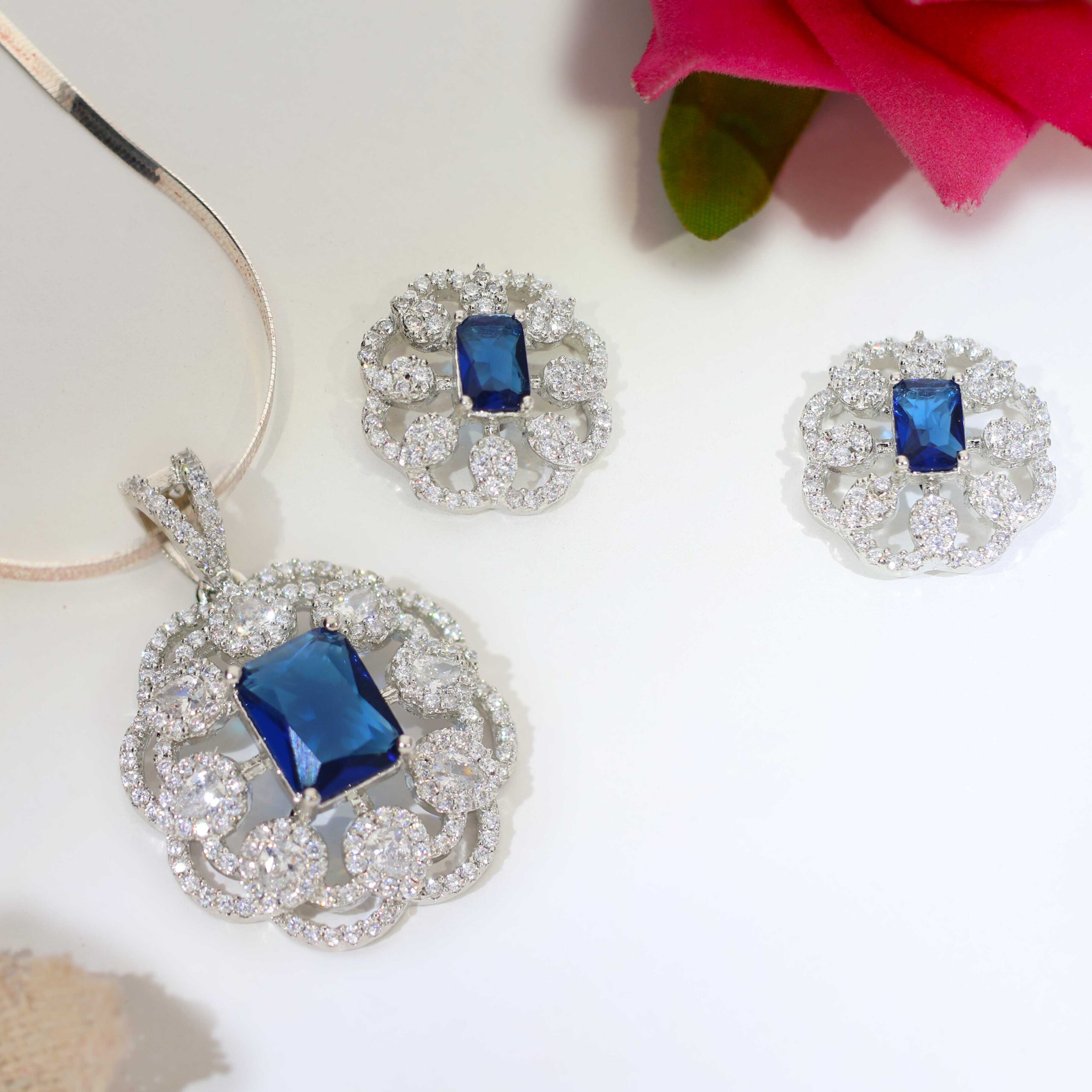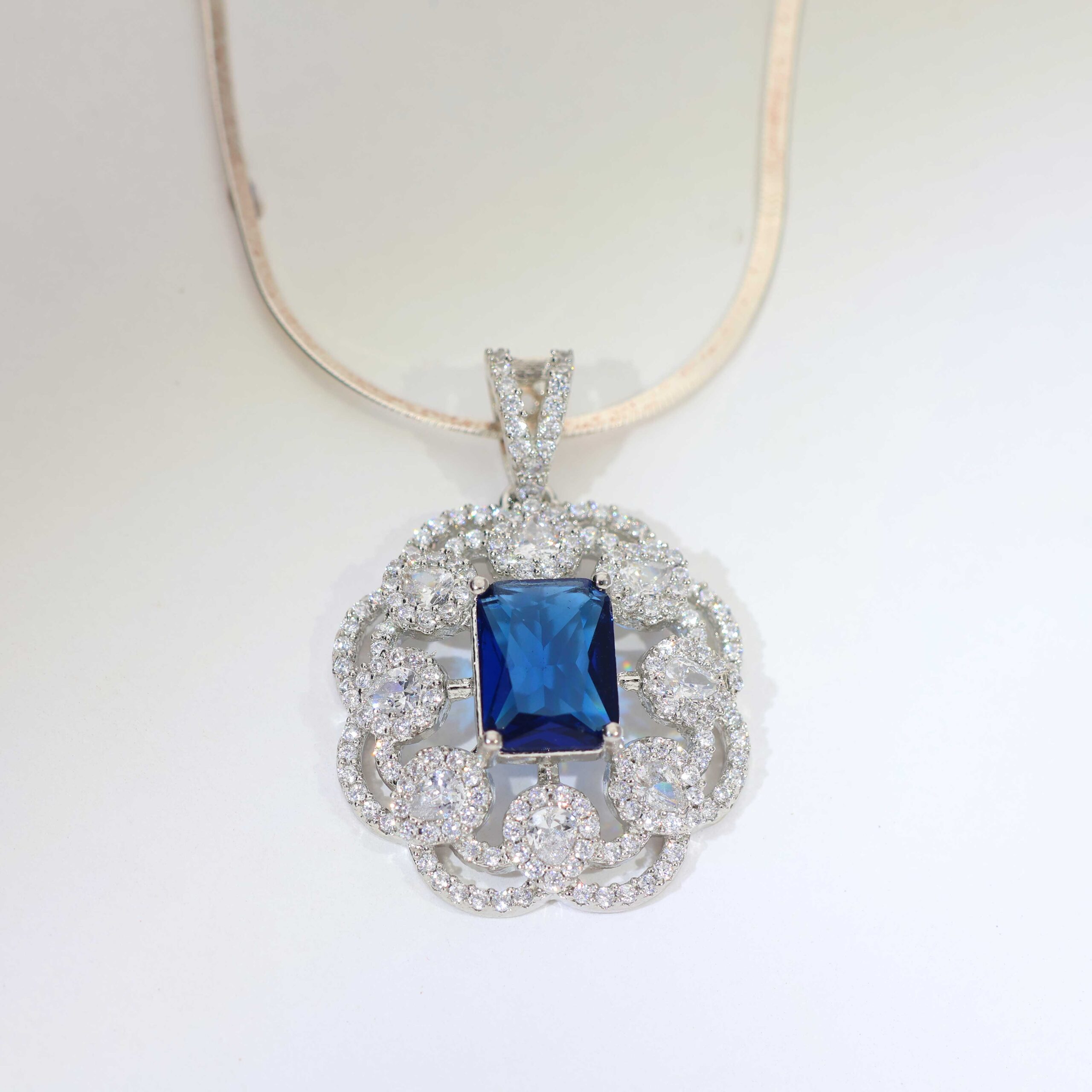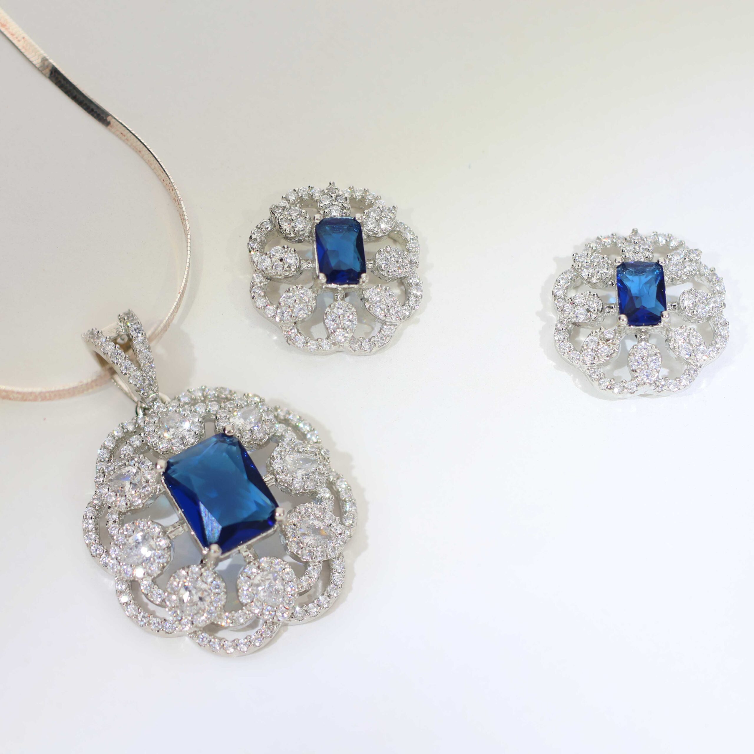 Home » Silver » Necklace and Sets » Royal Sapphire Lace Pendant Set/ Without Chain