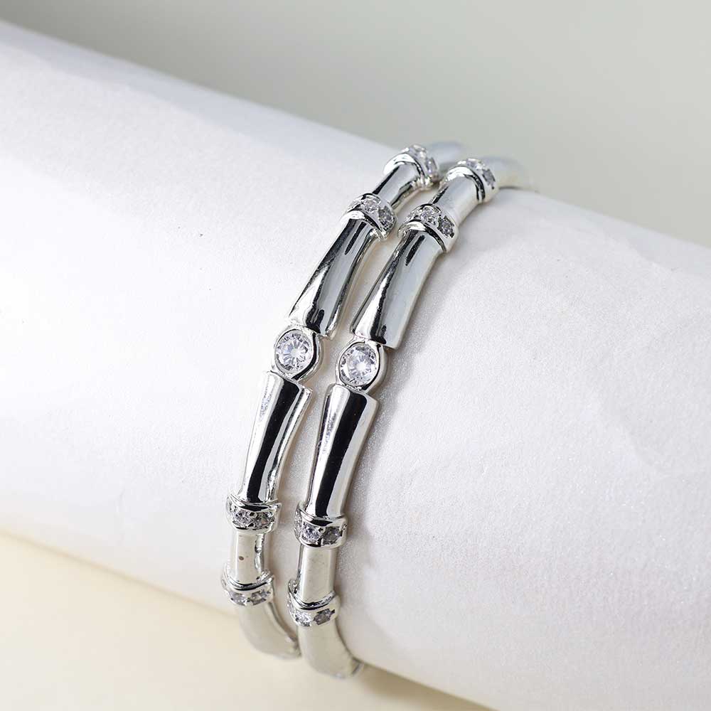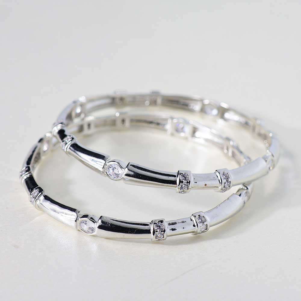 A stylish mix of black and white stones on polished silver makes these kangans the perfect playful accessory for tiny wrists.