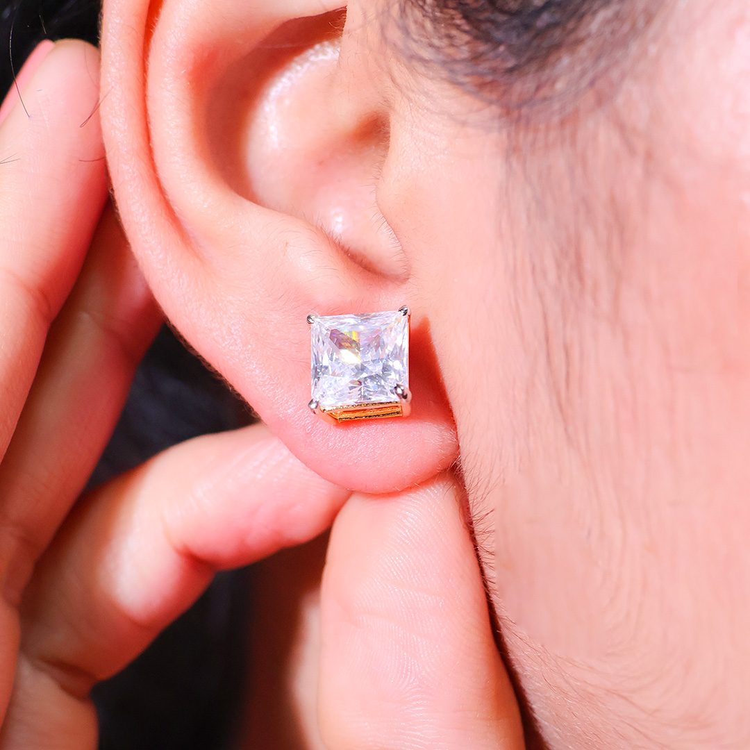 Design: Classic silver stud earrings with a brilliant clear stone that gives everyday luxury shine.