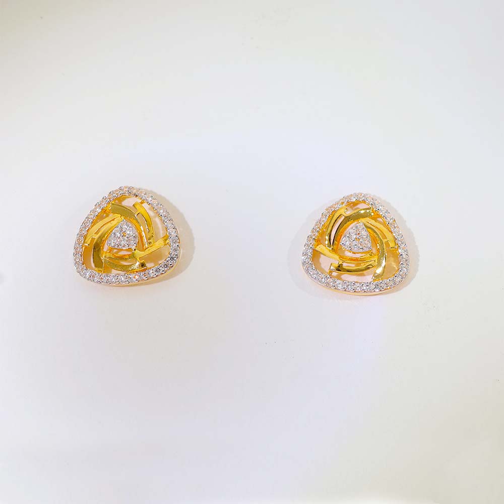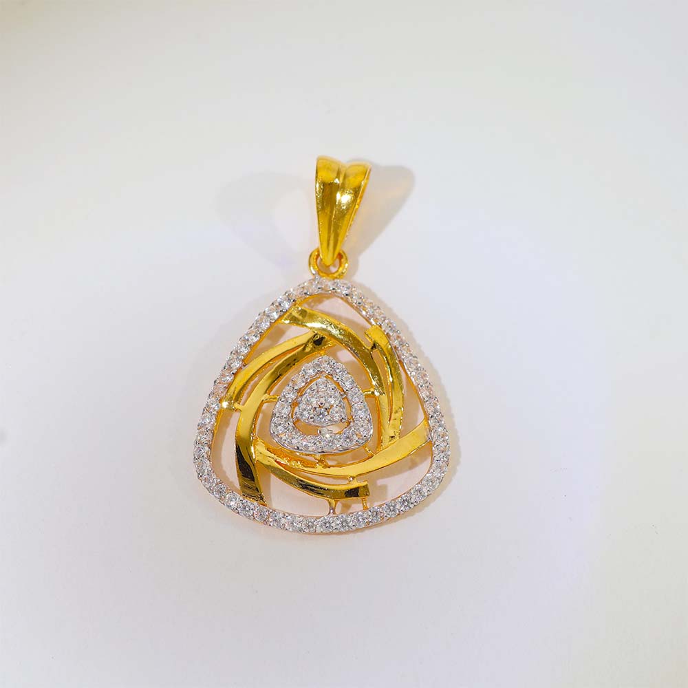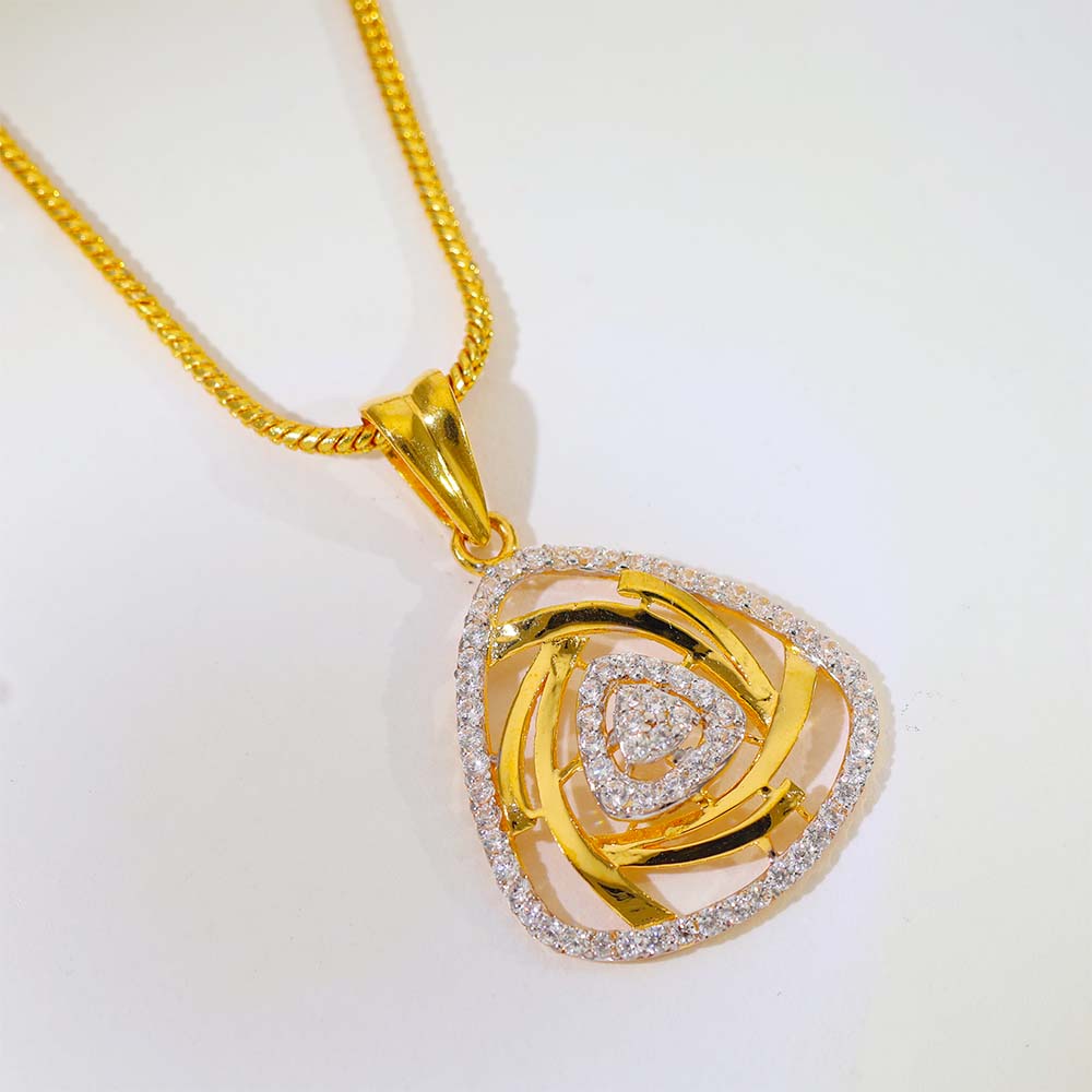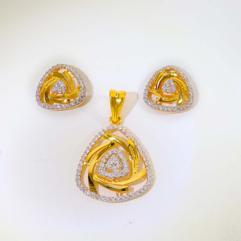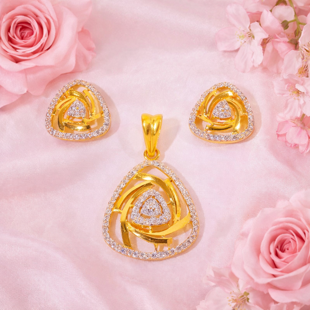 Crafted with a swirl triangle shape, this ladies pendent set features sparkling stones and a smooth silver finish for a classy look.
