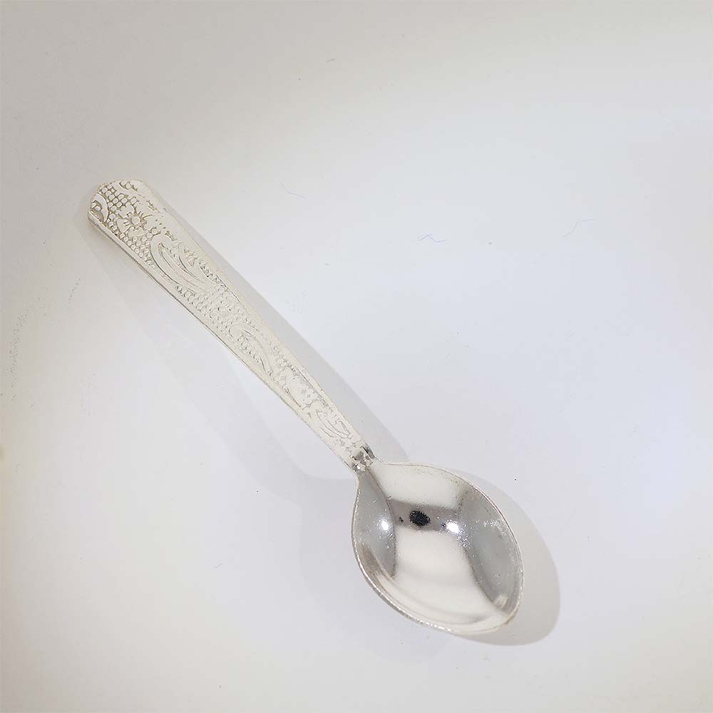 Crafted in pure silver with a smooth spoon bowl and rounded handle for baby-safe use.