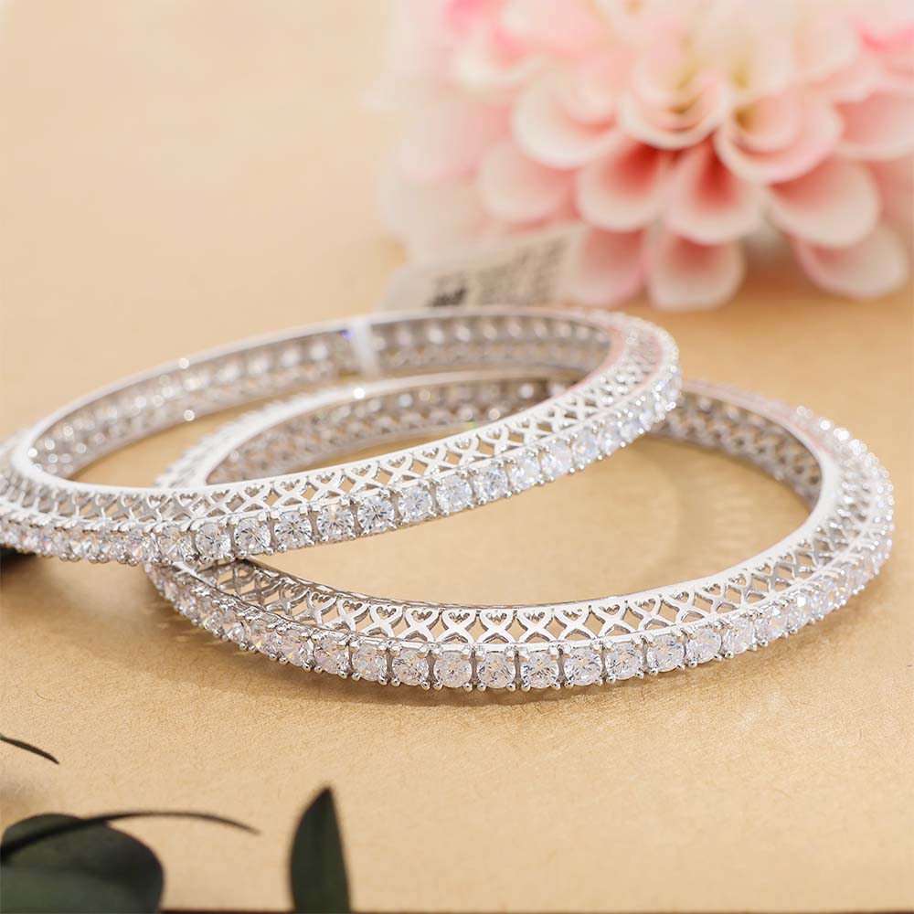 StarLine Silver ladies bangles are made to give a starry sparkle with every move. The stones are set close together, creating a bright line of shine around the wrist. These ladies bangles match beautifully with sarees, lehengas and gowns.