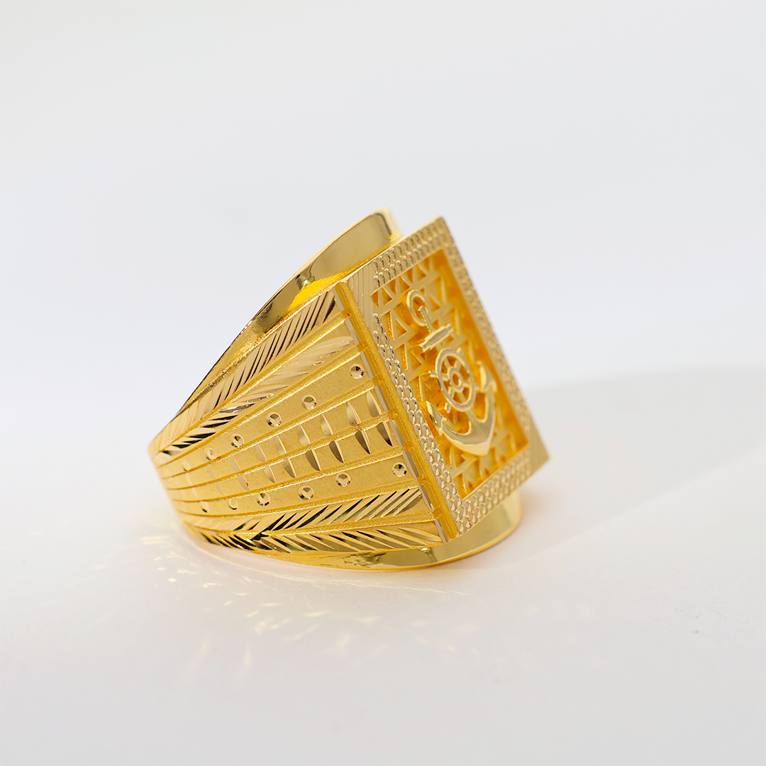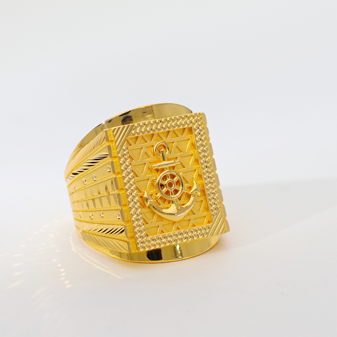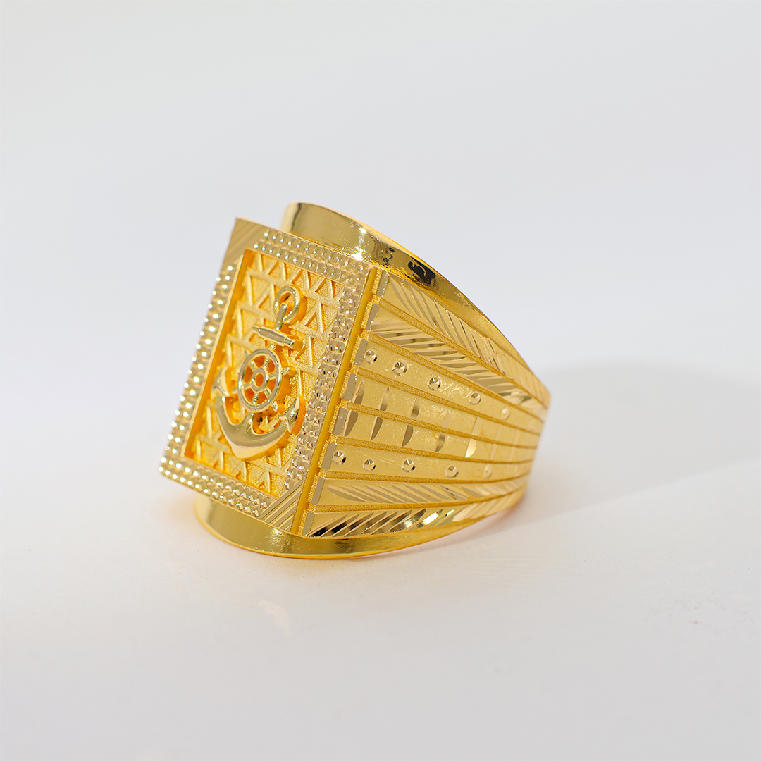 Design: This distinguished 22K gold ring features a finely detailed anchor emblem, set against a textured gold background, reflecting the spirit of the open sea and an unbreakable resolve. Perfect for the man who navigates life with purpose.