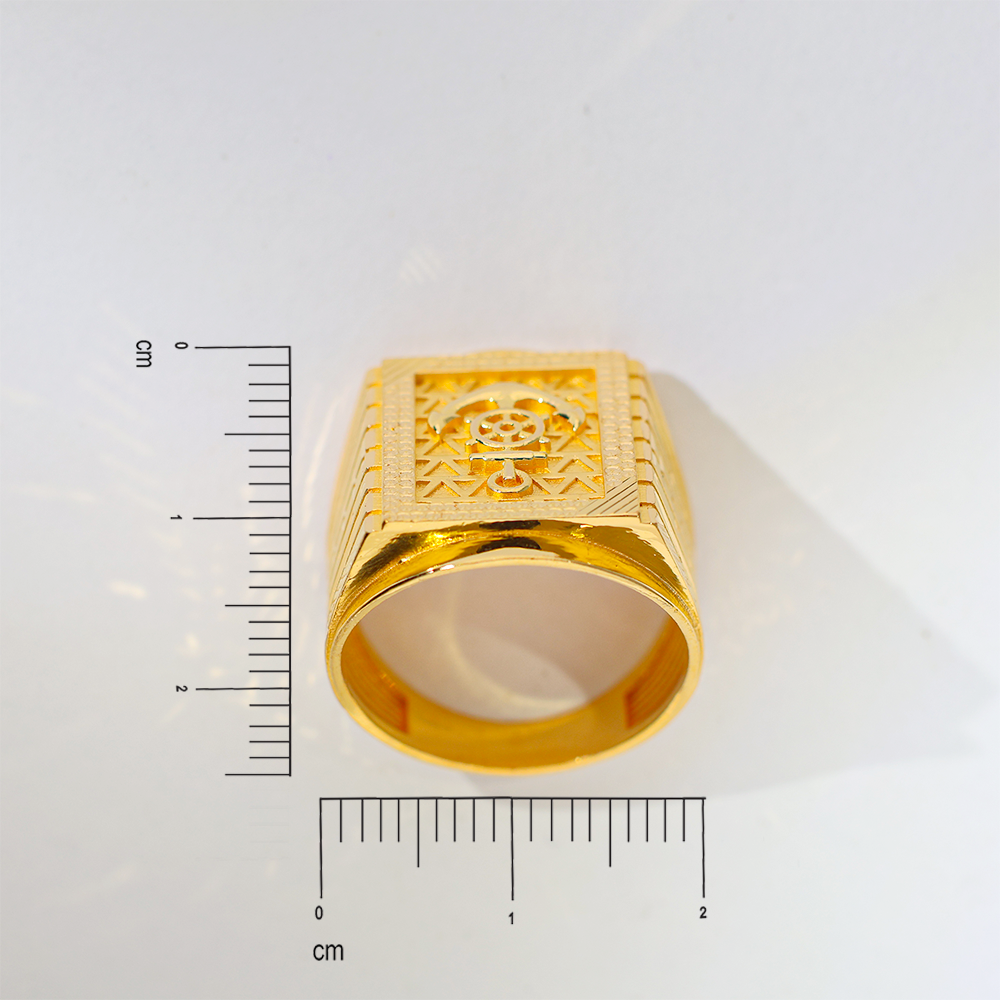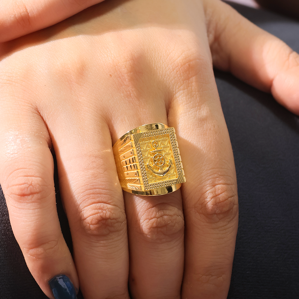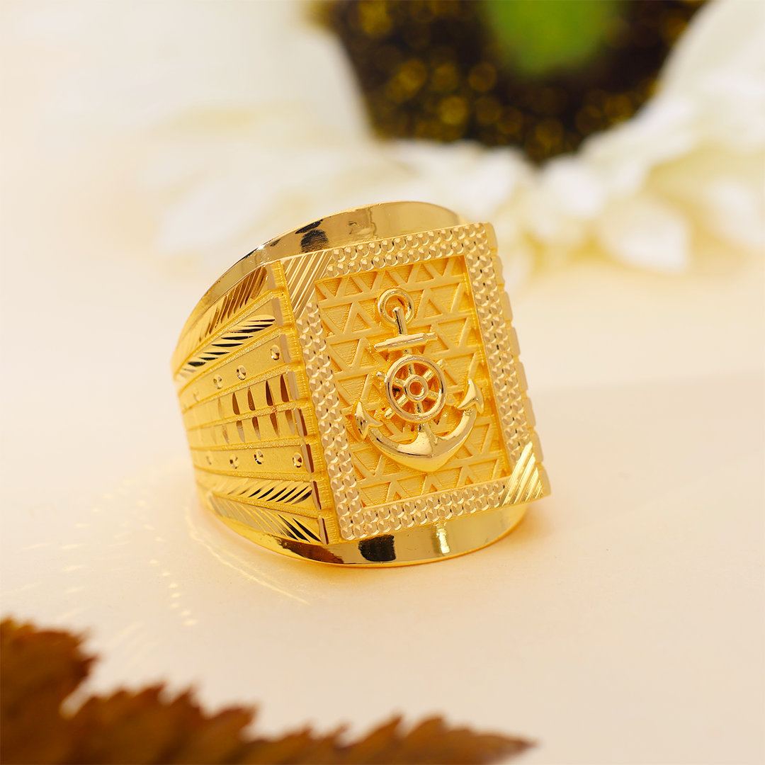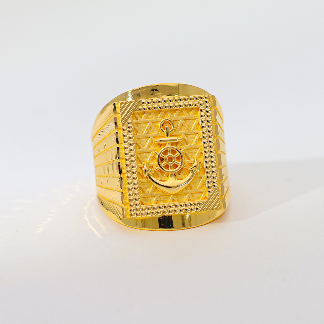 Design: This distinguished 22K gold ring features a finely detailed anchor emblem, set against a textured gold background, reflecting the spirit of the open sea and an unbreakable resolve. Perfect for the man who navigates life with purpose.